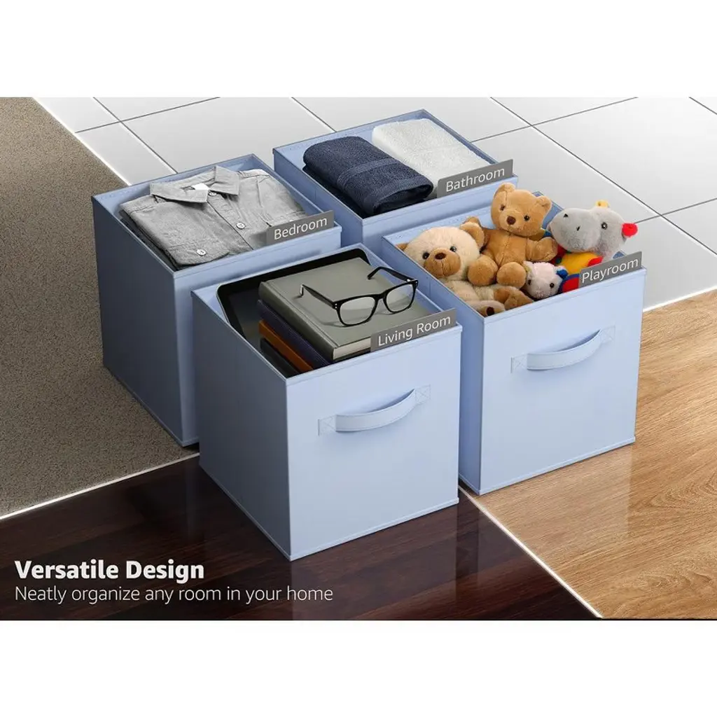 Sorbus 11 Inch 6 Pack Foldable Fabric Storage Cube Bins With Handles - For Organizing Pantry, Closet, Nursery, Playroom, And More (Pastel Blue)