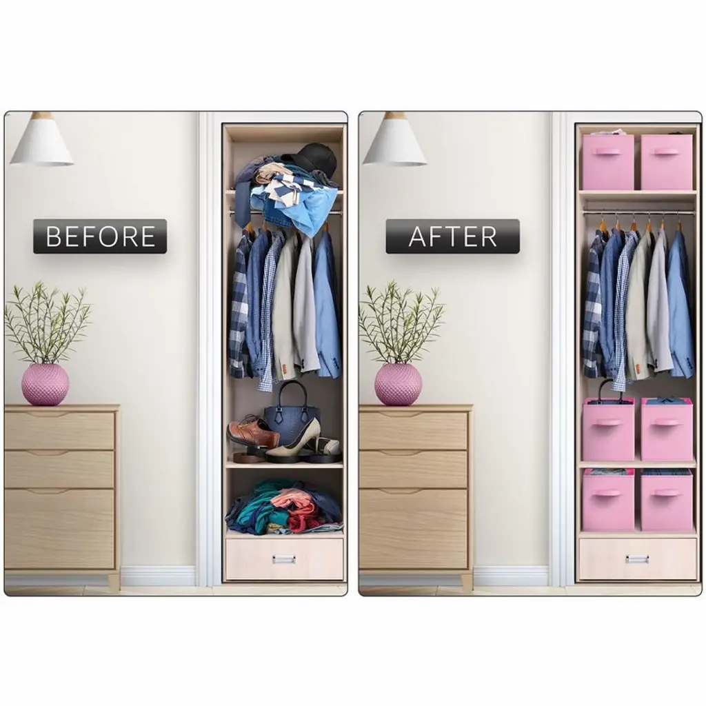 Sorbus 11 Inch 6 Pack Foldable Fabric Storage Cube Bins With Handles - For Organizing Pantry, Closet, Nursery, Playroom, And More (Pastel Pink)