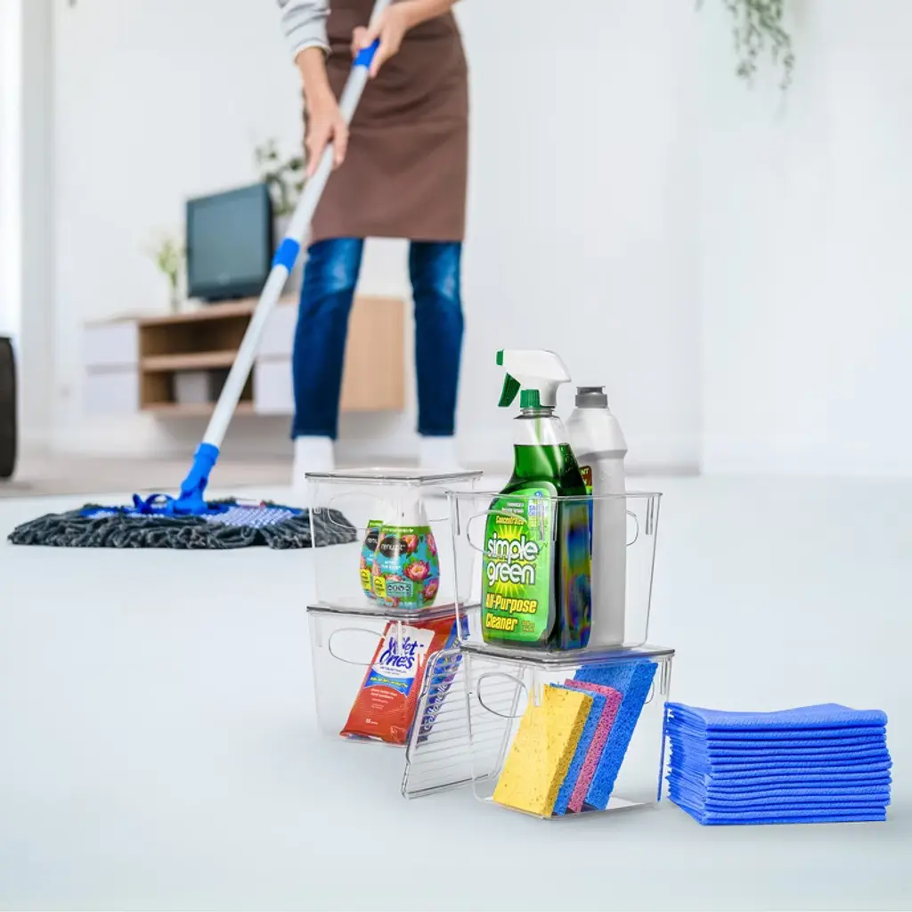 Sorbus 4 Pack Small Clear Plastic Storage Bins With Lids And Handles For Cleaning Supplies - Conquer Clutter, Enhance Organization And Style