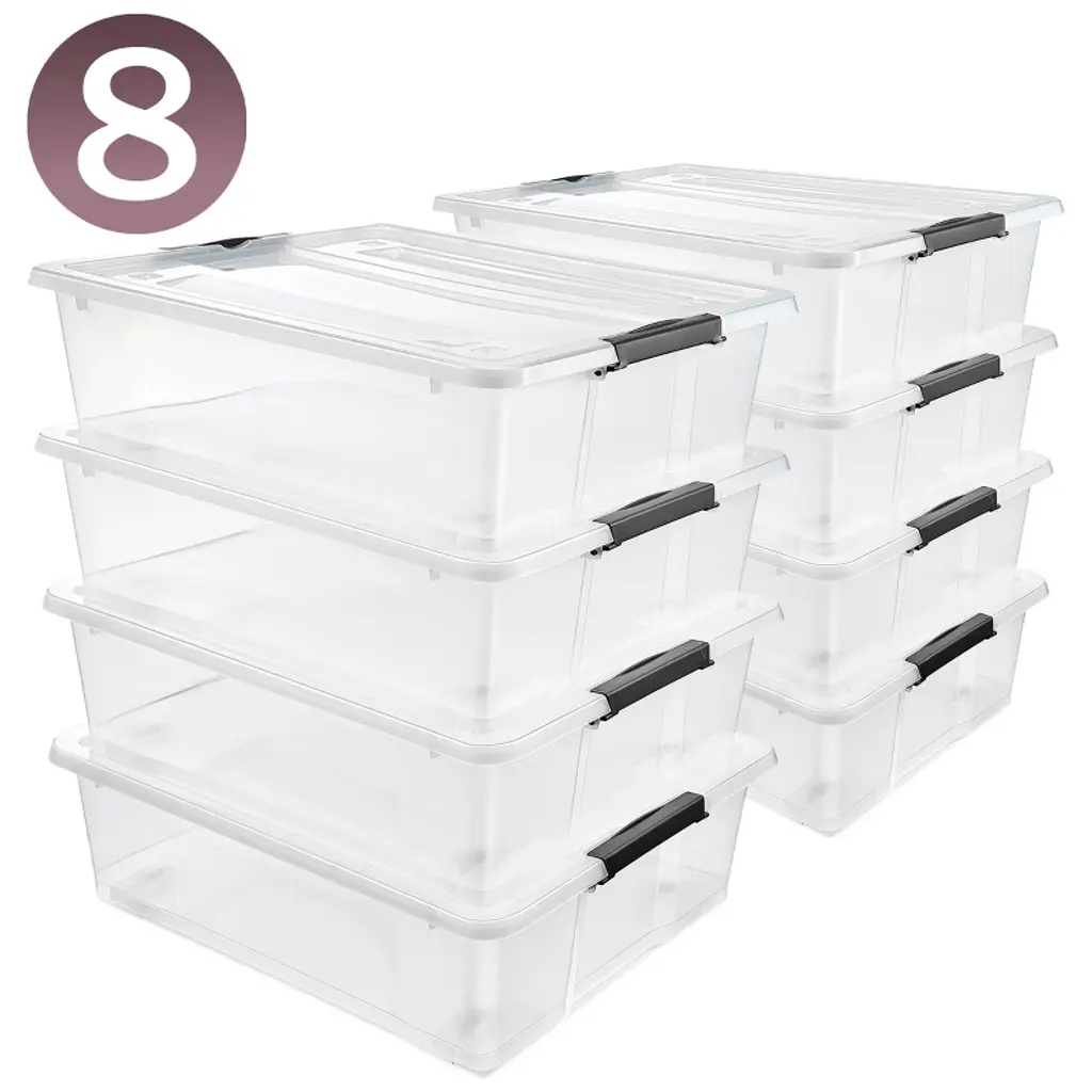 Sorbus 8 Pack 40qt Clear Underbed Stackable Storage Bins With Lids And Handles - Versatile Storage For Clothing, Bedding, And More