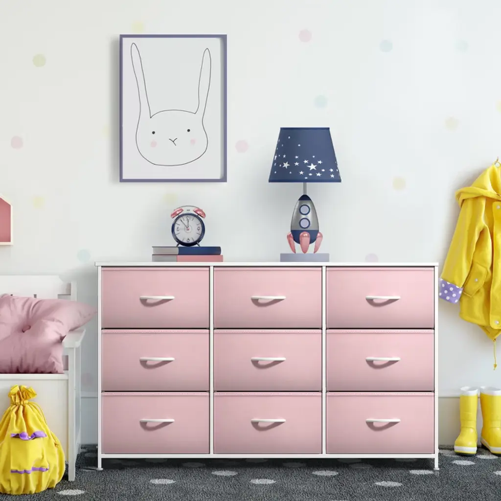 Keep your household clutter neatly tucked away in the Sorbus 9-Drawer Fabric Dresser. The colorful dresser chest features a tabletop surface and 9 pull-out drawers that will easily tuck away household clutter. The Sorbus girls & boys dresser is the ultimate toddler dresser specifically designed with kids in mind. This organizer is perfect for baby storage and nurseries. Add a pop of color to your child’s bedroom or playroom. The lightweight design allows for effortless transport and reorganization. This chest of drawers features removable fabric drawer shelves that are great for storing clothing, toys, accessories, and more. Place this Sorbus dresser in a closet, next to the bed, use it as a TV stand, or add storage to a playroom or office; the opportunities for organization are endless.