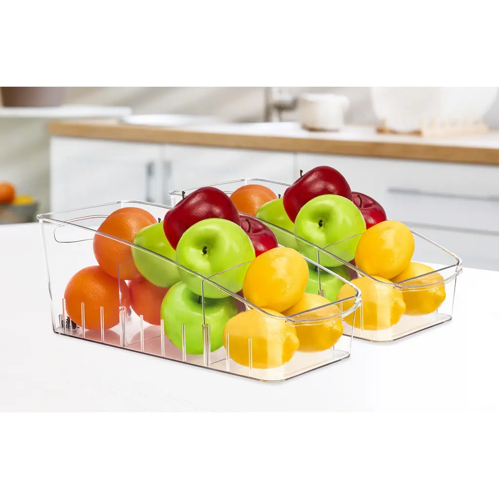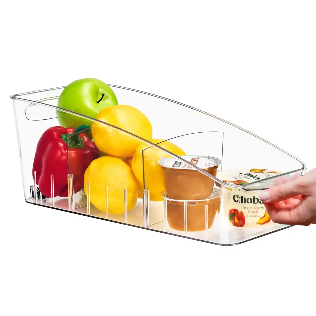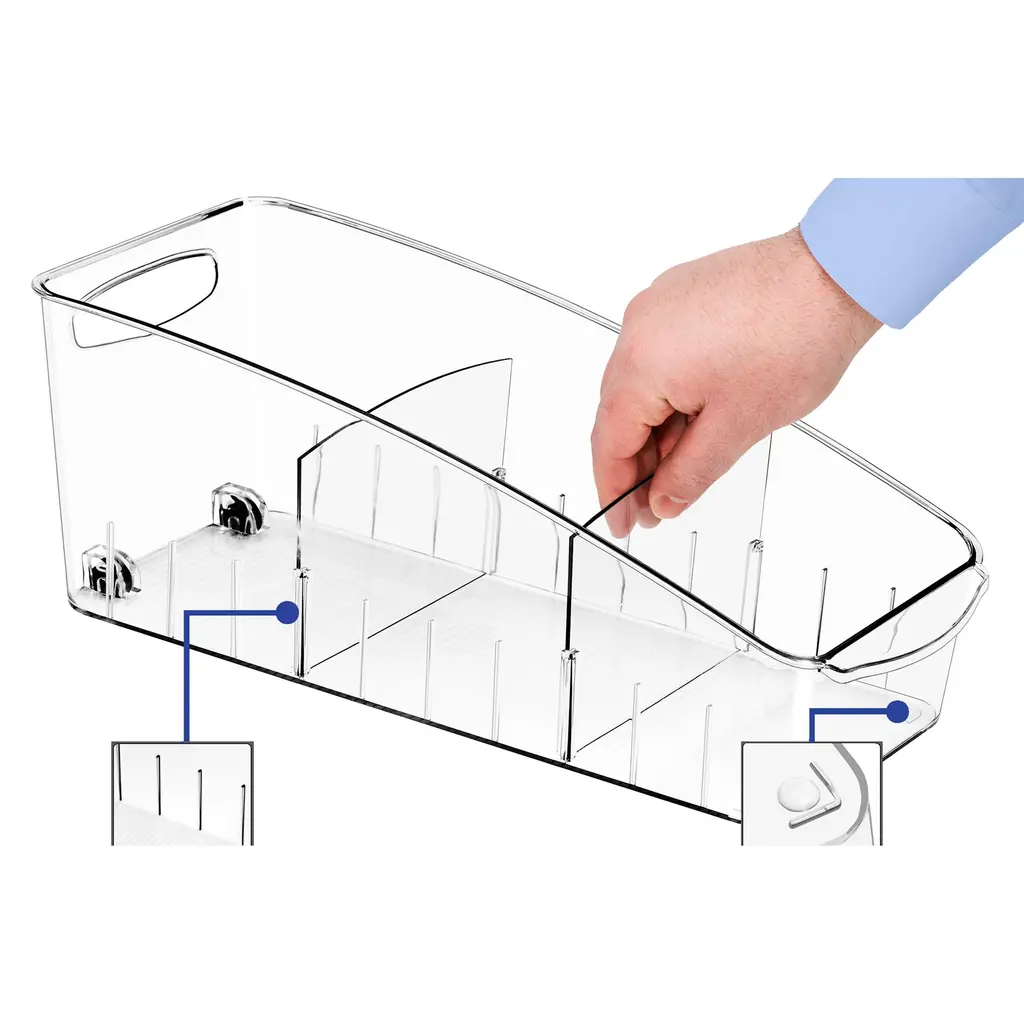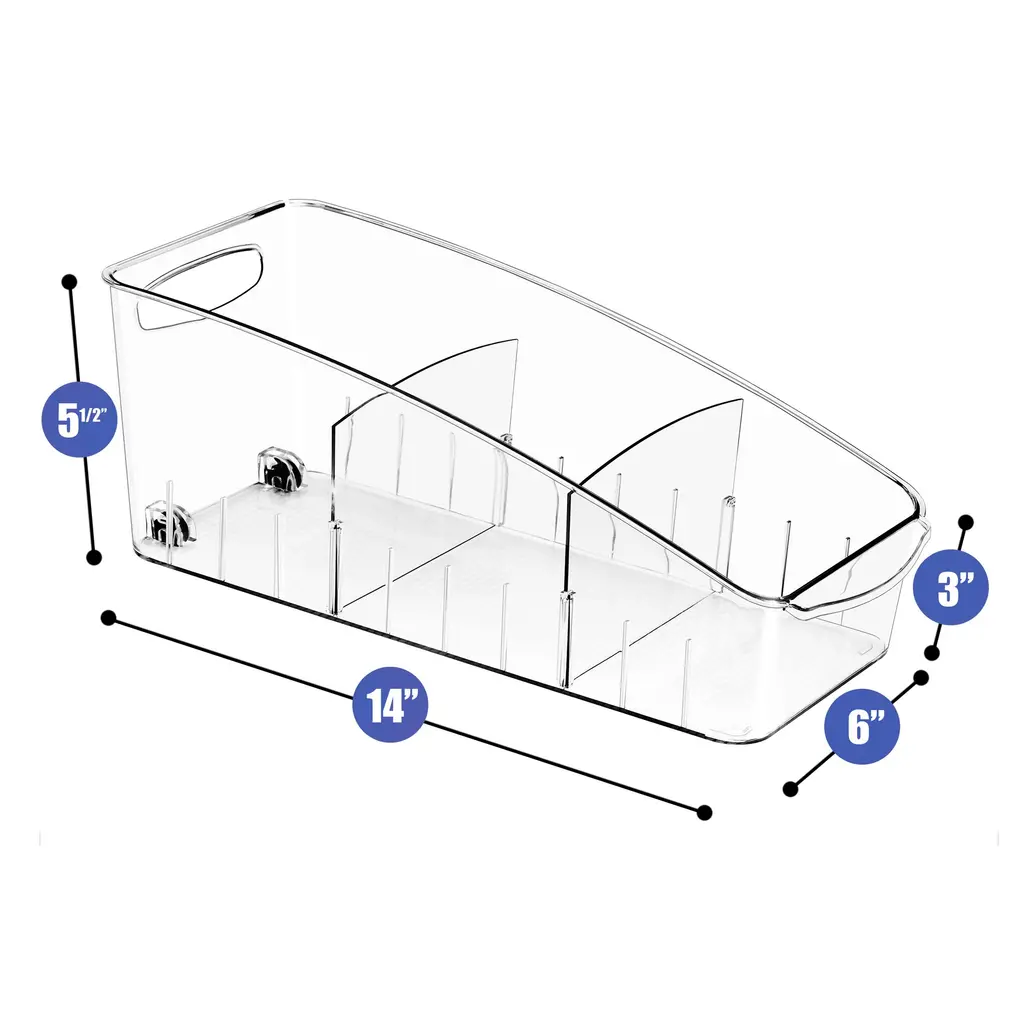 The Sorbus Clear Organizing Bins on Wheels make cooking, snacking, and packing simple and easy. Easily access small kitchen items that might otherwise get lost in the back of your fridge. Use the back wheels to pull the tray out smoothly and retrieve or restock items in seconds.Sorbus Rolling Fridge Caddy: Use back wheels to pull the tray out smoothly - No tipping or slipping - Easily access small kitchen items that might otherwise get lost in the back of your fridge Back Wheels & Front Stoppers: Back wheels roll items in and out smoothly while front stoppers provide security when the clear storage drawers are stationary Adjustable Dividers: Adjustable dividers allow you to group similar foods together and organize snacks Carry Handles: Transport plastic storage bins effortlessly due to easy-to-grip, built-in carry handles Design Details: Clear storage bins are made of BPA-free plastic - Clean fridge organizers by hand with soap and water