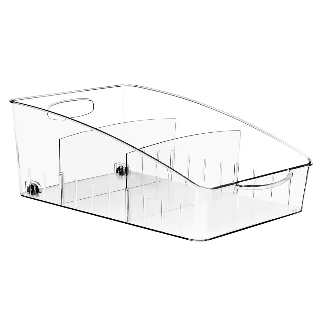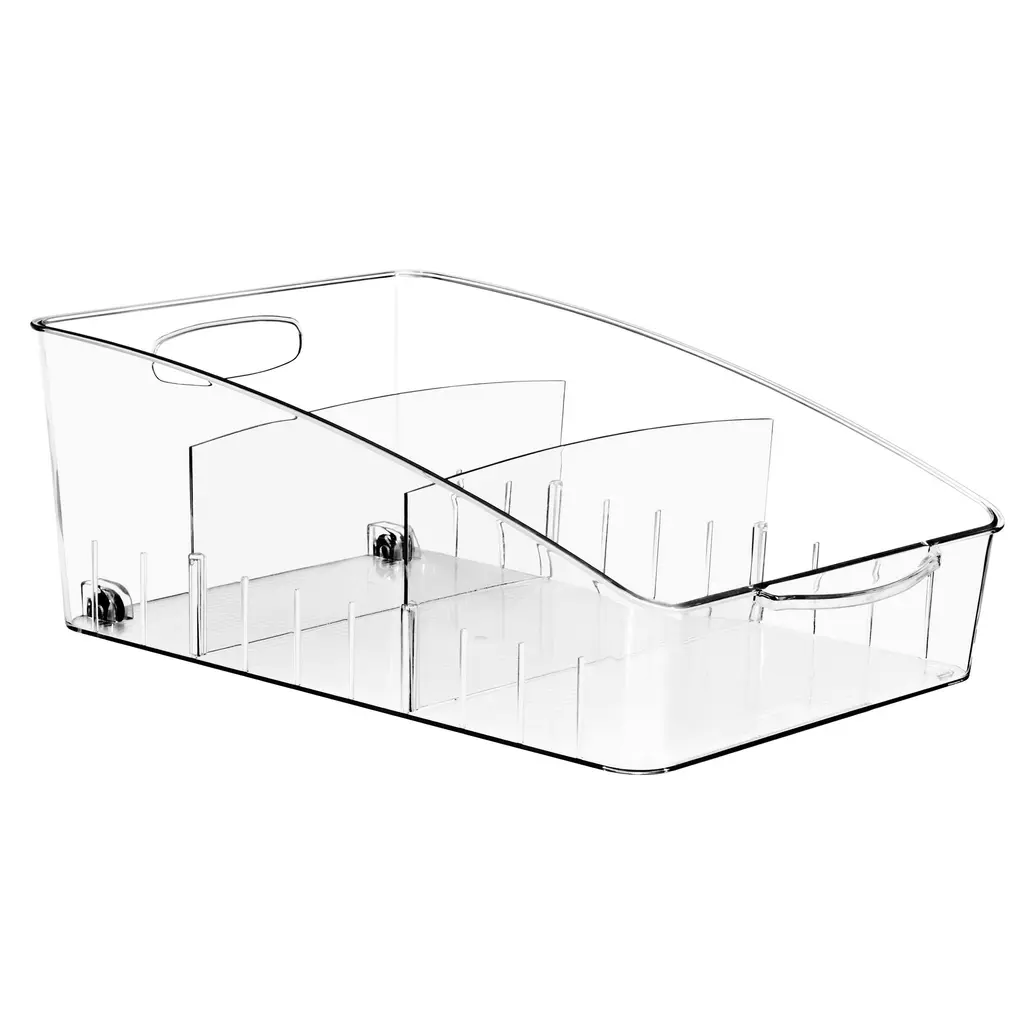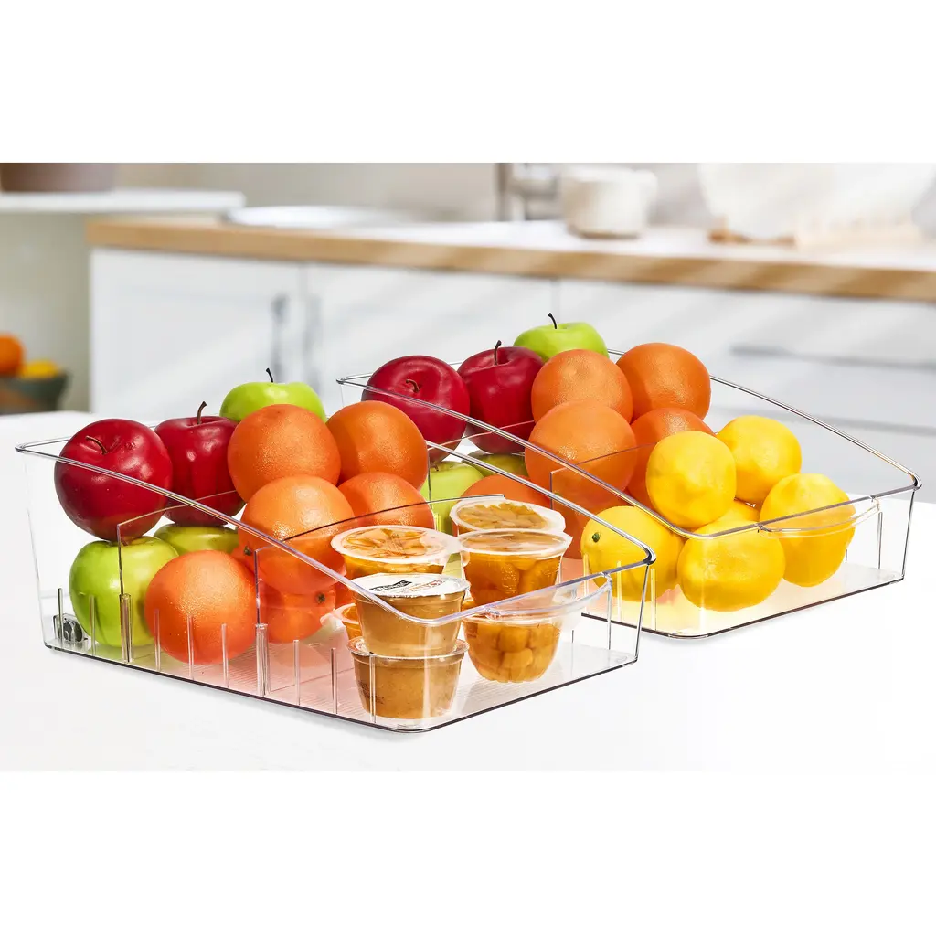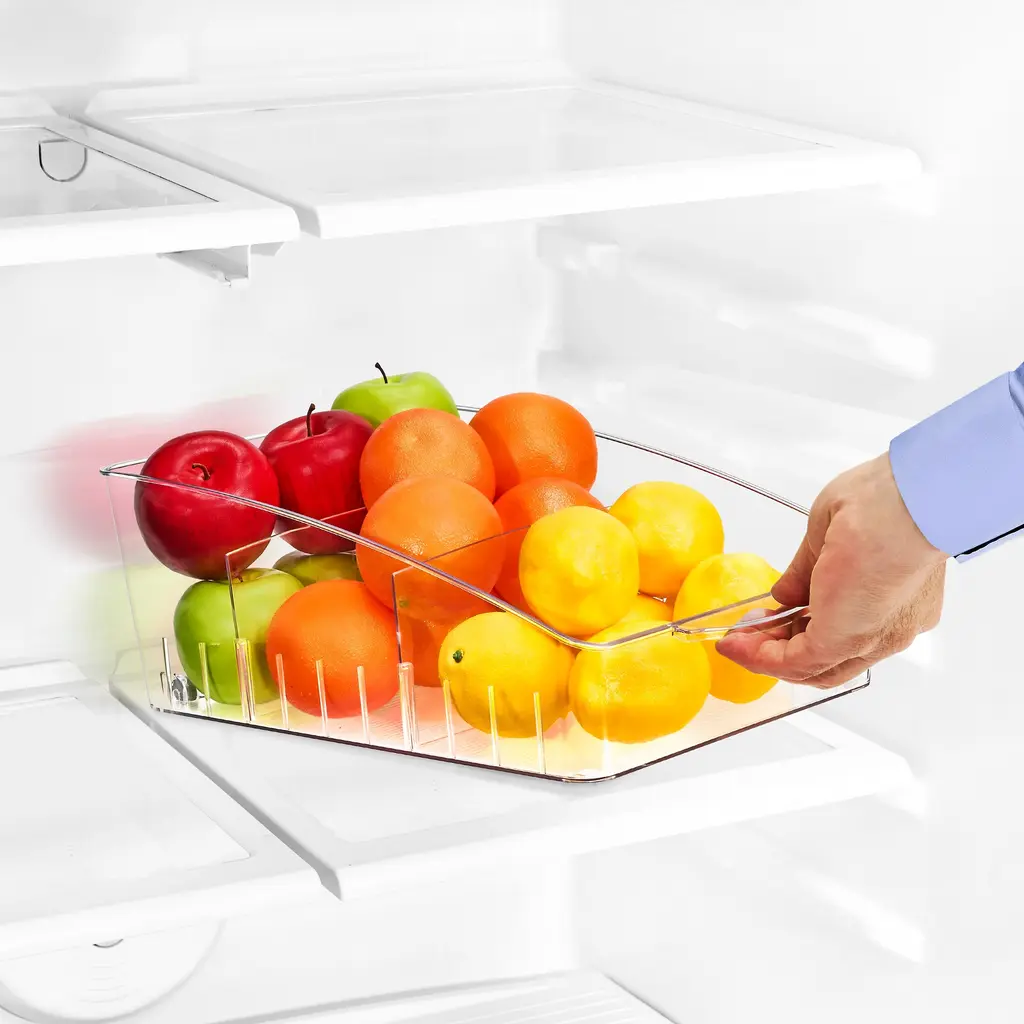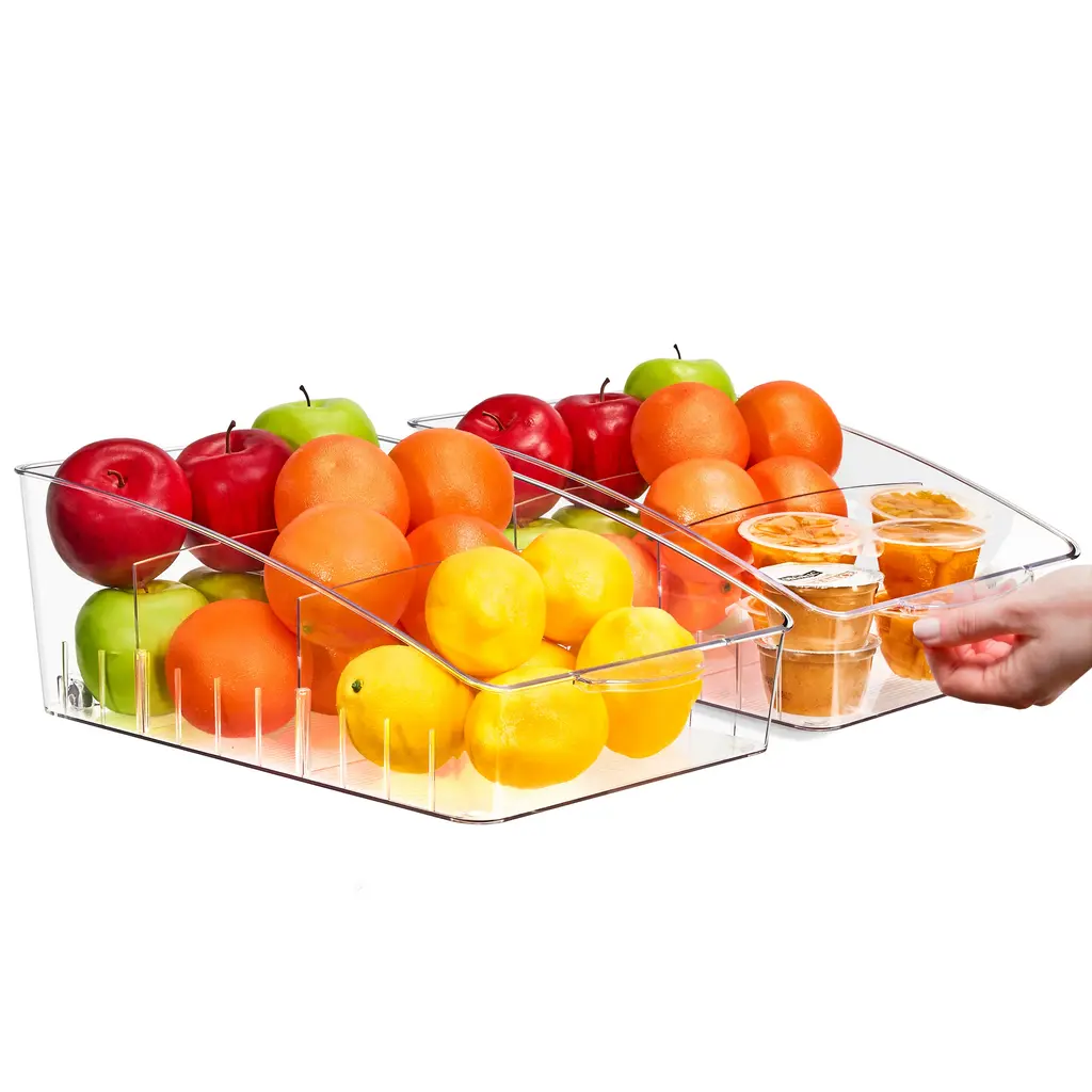 The Sorbus Clear Organizing Bins on Wheels make cooking, snacking, and packing simple and easy. Easily access small kitchen items that might otherwise get lost in the back of your fridge. Use the back wheels to pull the tray out smoothly and retrieve or restock items in seconds.Sorbus Rolling Fridge Caddy: Use back wheels to pull the tray out smoothly - No tipping or slipping - Easily access small kitchen items that might otherwise get lost in the back of your fridge Back Wheels & Front Stoppers: Back wheels roll items in and out smoothly while front stoppers provide security when the clear storage drawers are stationary Adjustable Dividers: Adjustable dividers allow you to group similar foods together and organize snacks Carry Handles: Transport plastic storage bins effortlessly due to easy-to-grip, built-in carry handles Design Details: Clear storage bins are made of BPA-free plastic - Clean fridge organizers by hand with soap and water