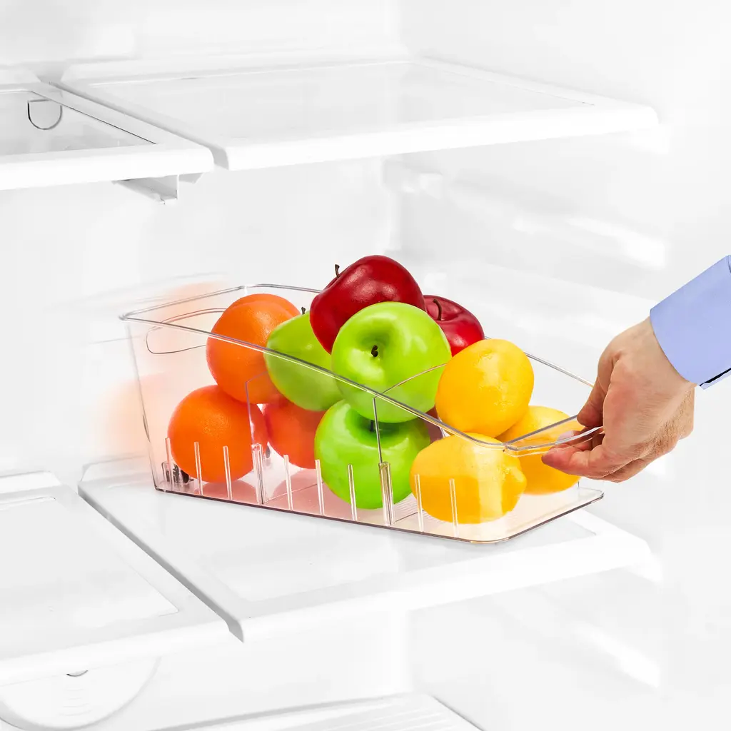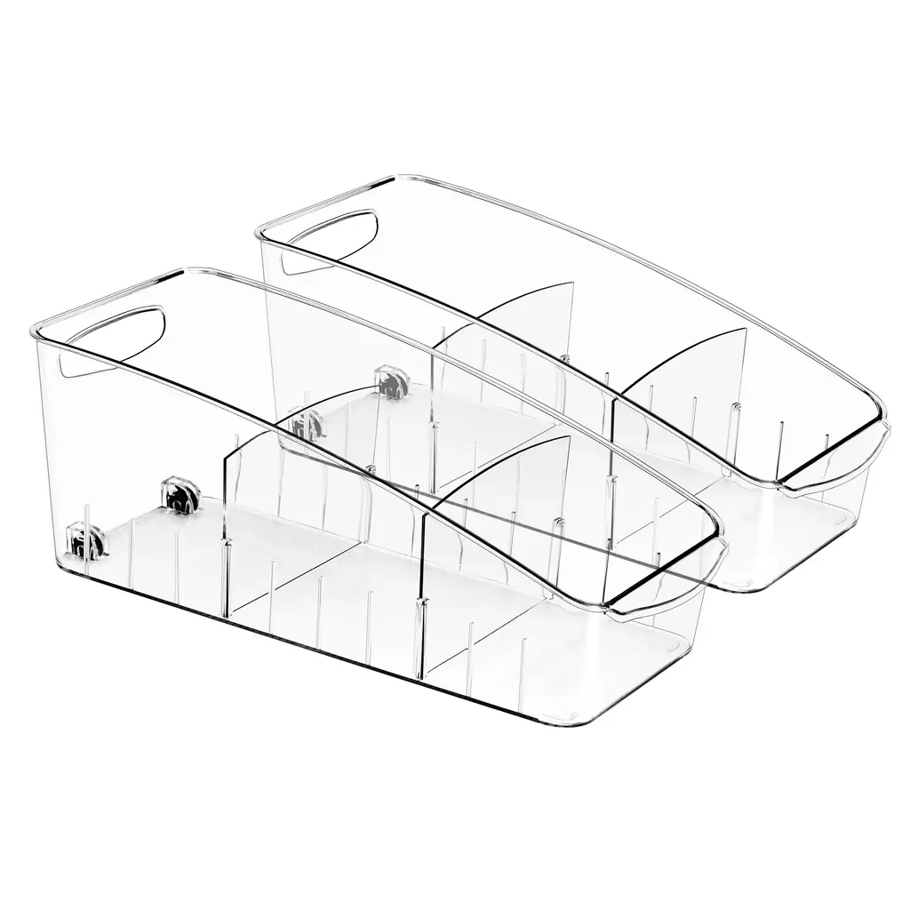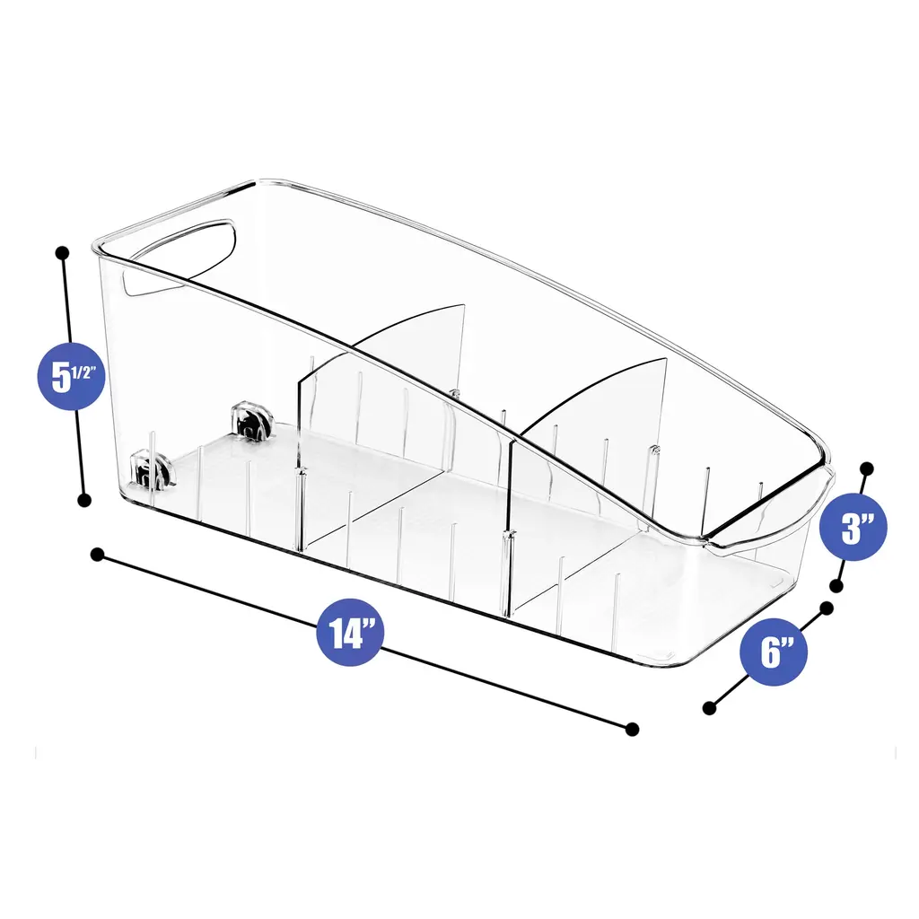 The Sorbus Clear Organizing Bins on Wheels make cooking, snacking, and packing simple and easy. Easily access small kitchen items that might otherwise get lost in the back of your fridge. Use the back wheels to pull the tray out smoothly and retrieve or restock items in seconds.Sorbus Rolling Fridge Caddy: Use back wheels to pull the tray out smoothly - No tipping or slipping - Easily access small kitchen items that might otherwise get lost in the back of your fridge Back Wheels & Front Stoppers: Back wheels roll items in and out smoothly while front stoppers provide security when the clear storage drawers are stationary Adjustable Dividers: Adjustable dividers allow you to group similar foods together and organize snacks Carry Handles: Transport plastic storage bins effortlessly due to easy-to-grip, built-in carry handles Design Details: Clear storage bins are made of BPA-free plastic - Clean fridge organizers by hand with soap and water