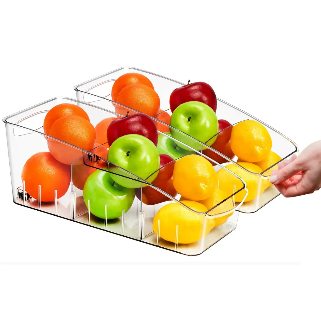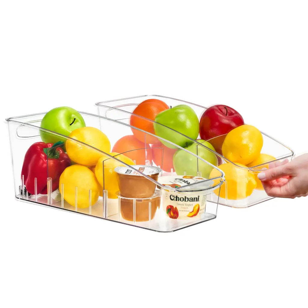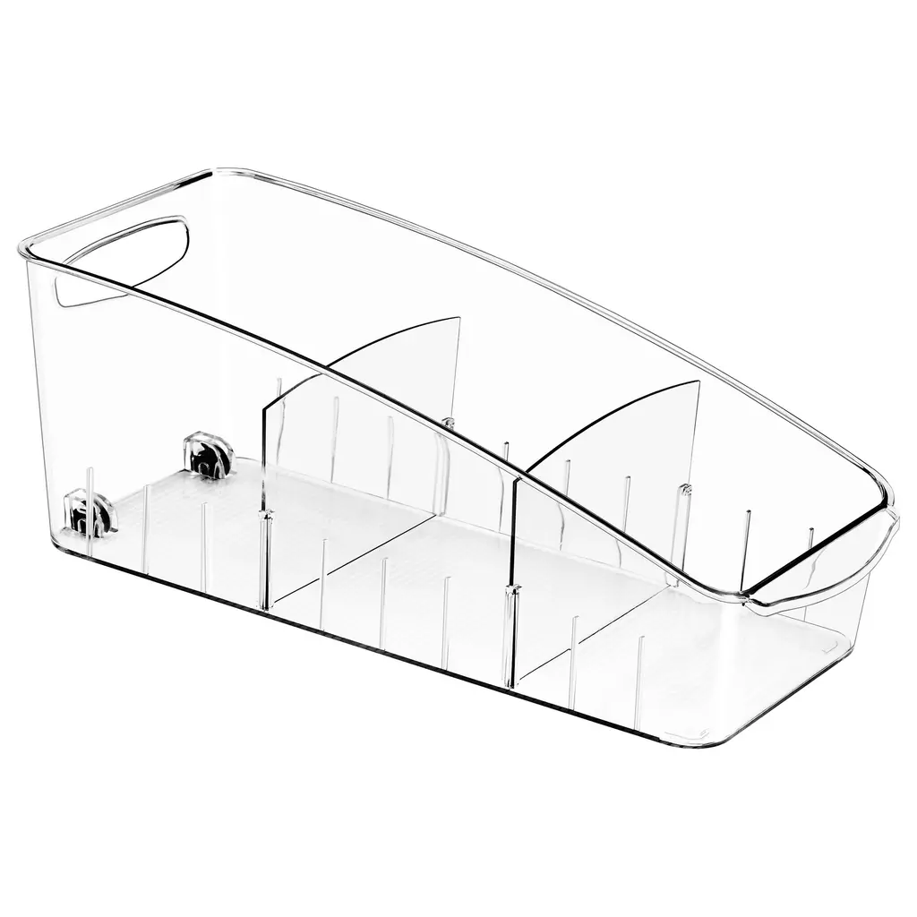 The Sorbus Clear Organizing Bins on Wheels make cooking, snacking, and packing simple and easy. Easily access small kitchen items that might otherwise get lost in the back of your fridge. Use the back wheels to pull the tray out smoothly and retrieve or restock items in seconds.Sorbus Rolling Fridge Caddy: Use back wheels to pull the tray out smoothly - No tipping or slipping - Easily access small kitchen items that might otherwise get lost in the back of your fridge Back Wheels & Front Stoppers: Back wheels roll items in and out smoothly while front stoppers provide security when the clear storage drawers are stationary Adjustable Dividers: Adjustable dividers allow you to group similar foods together and organize snacks Carry Handles: Transport plastic storage bins effortlessly due to easy-to-grip, built-in carry handles Design Details: Clear storage bins are made of BPA-free plastic - Clean fridge organizers by hand with soap and water