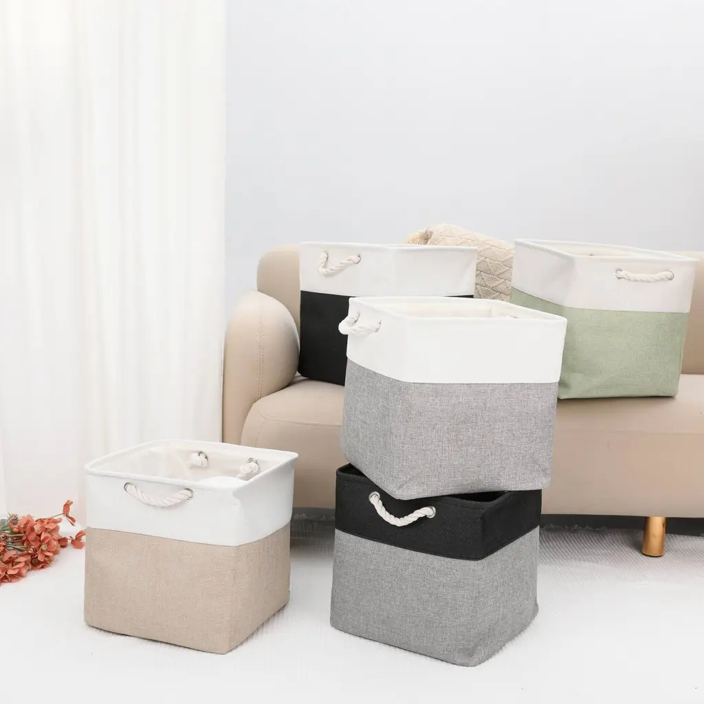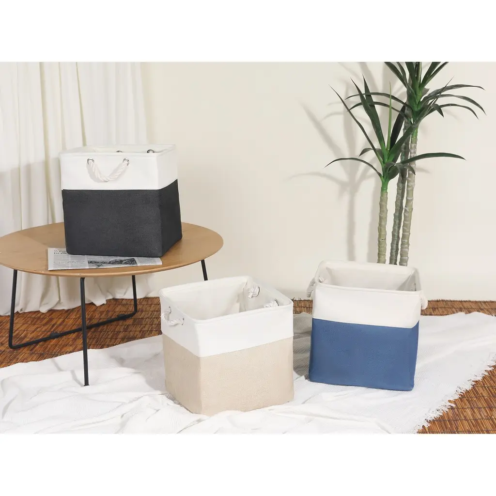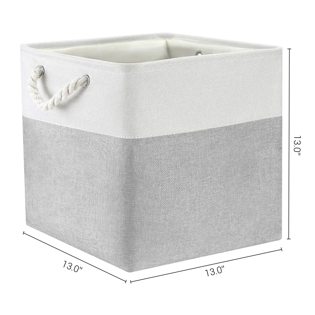 Premium Material: The cube storage organizer is made from good quality fabric and reinforced with a sturdy rope handle. The solid construction enables the shelf storage bins to stand upright without support, even when emptyCollapsible Design: The storage box can be folded flat when not in use to save space or transport. The large blanket basket for organizing various items, including clothing, towels, blankets, pet supplies, books, magazines, albums, DVDs, office and craft supplies, etcSpacious Capacity: Our organization bin enables you to store a wide variety of items to keep your home tidy and organizedEasy To Care: The large cube organizer is sturdy and has no odor and they are not machine washable. Lined with a thin linen fabric, linen closet organizer and storage is easy to clean, just wipe it with a damp sponge or clothVersatile Use Cubby Bin: Use the collapsible storage bin in the room, playroom, laundry area, closet, storage room, etc. Sit cube organizer bin on the floor, in the closet, bookcase, desk, shelving area, cubbies, and collage dorm room, classroom decor and towel organizerOur baskets provide attractive, lightweight solutions for all your storage and organization needs while keeping household items tidy and organized - Complete storage basket, closet organizers, nurseries, and more.These fabric storage bins are easy to carry or remove on a shelf. They could work well as drawers, open-top bins, or storage baskets for shelves.