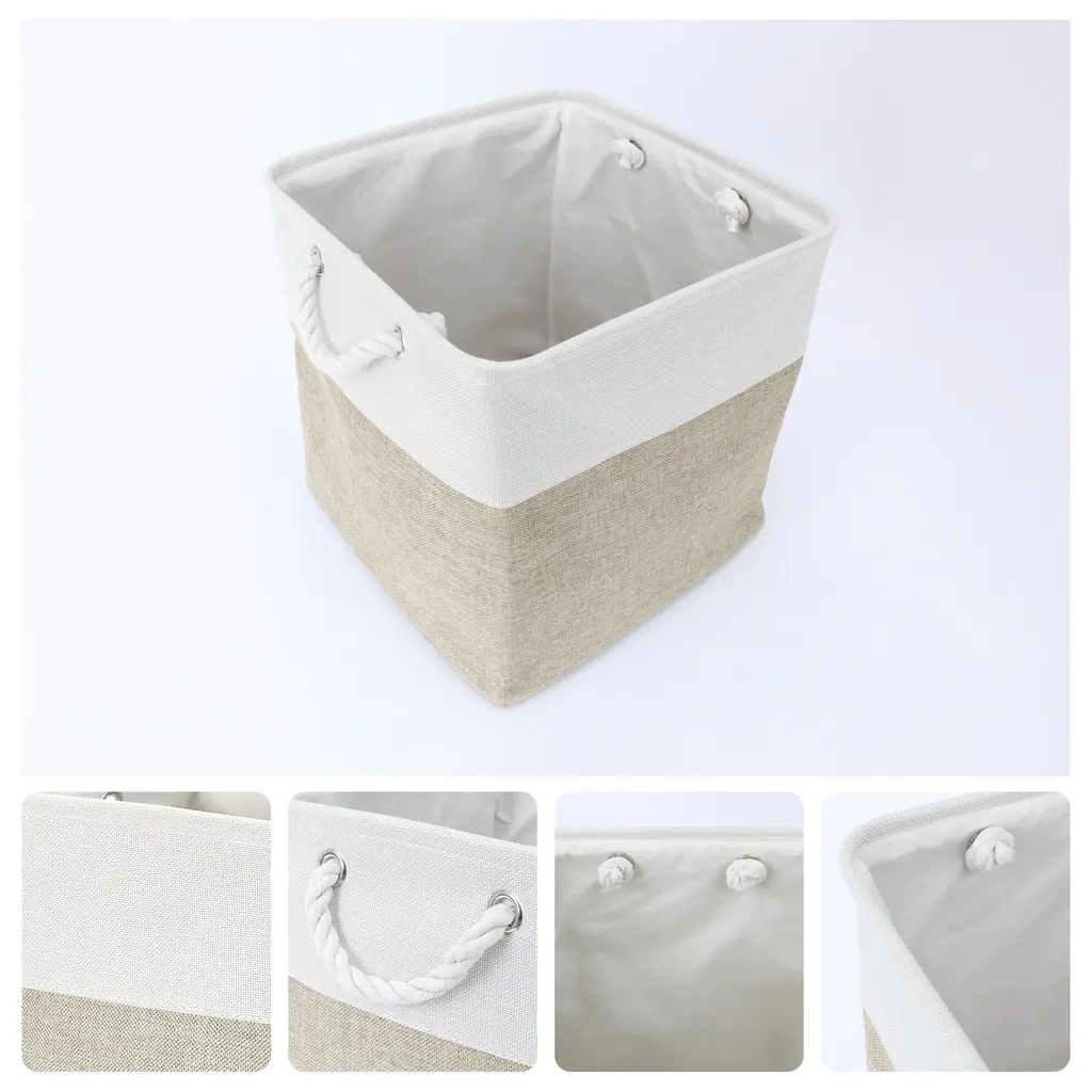 Premium Material: The cube storage organizer is made from good quality fabric and reinforced with a sturdy rope handle. The solid construction enables the shelf storage bins to stand upright without support, even when emptyCollapsible Design: The storage box can be folded flat when not in use to save space or transport. The large blanket basket for organizing various items, including clothing, towels, blankets, pet supplies, books, magazines, albums, DVDs, office and craft supplies, etcSpacious Capacity: Our organization bin enables you to store a wide variety of items to keep your home tidy and organizedEasy To Care: The large cube organizer is sturdy and has no odor and they are not machine washable. Lined with a thin linen fabric, linen closet organizer and storage is easy to clean, just wipe it with a damp sponge or clothVersatile Use Cubby Bin: Use the collapsible storage bin in the room, playroom, laundry area, closet, storage room, etc. Sit cube organizer bin on the floor, in the closet, bookcase, desk, shelving area, cubbies, and collage dorm room, classroom decor and towel organizerOur baskets provide attractive, lightweight solutions for all your storage and organization needs while keeping household items tidy and organized - Complete storage basket, closet organizers, nurseries, and more.These fabric storage bins are easy to carry or remove on a shelf. They could work well as drawers, open-top bins, or storage baskets for shelves.
