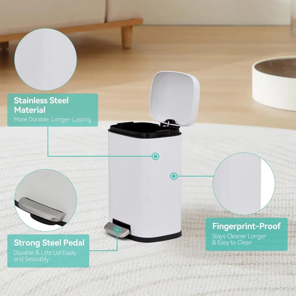 Bathroom Trash Can with Lid, Stainless Steel Kitchen Trash Can with 3.2 Gallon, Soft Close Step-On Pedal, Fingerprint-Resistant Finish for Kitchen or Bathroom