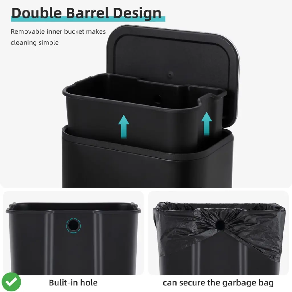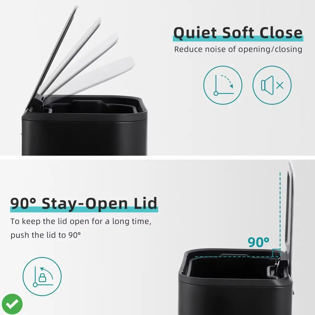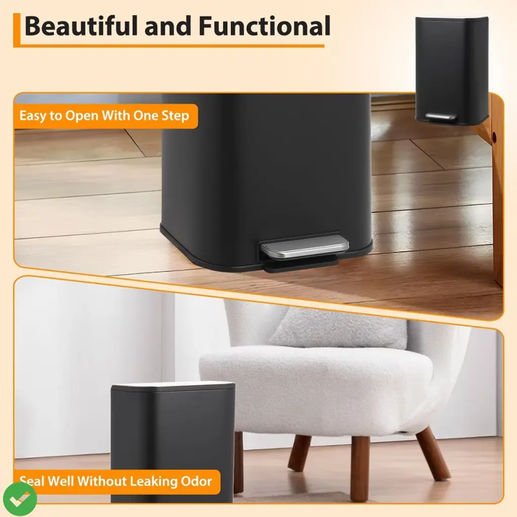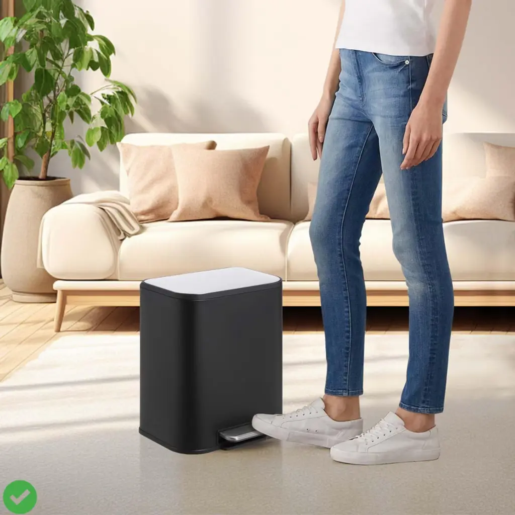 Bathroom Trash Can, 12L/20L/30L Stainless Steel Waste Bin, Soft-Close Lid, Narrow Step-on Garbage Bin - with Removable Plastic Inner Buckets (Black/White).Crafted from high-quality stainless steel, this trash can resists rust and corrosion, ensuring long-lasting use in your kitchen, bathroom, or office.