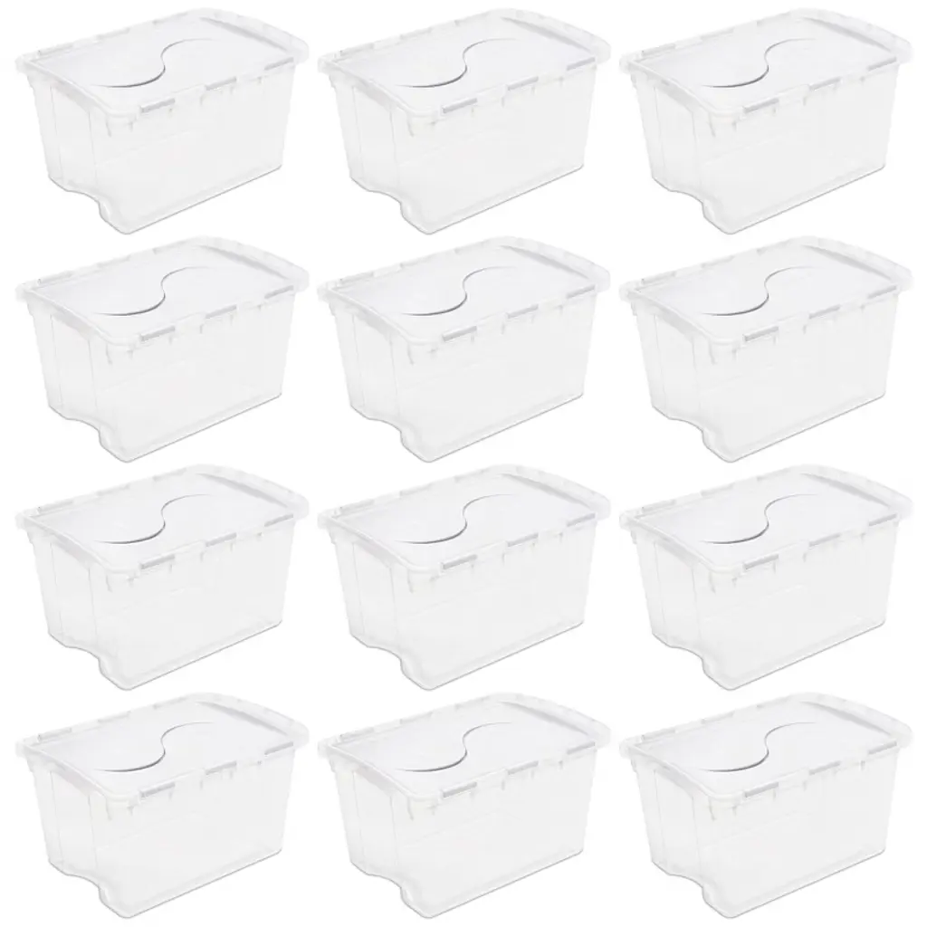 Sterilite 48 Qt Hinged Lid Storage Box, Stackable Bin With Lid, Plastic Container To Organize Home, Office, Basement, Clear With White Lid, 12-pack