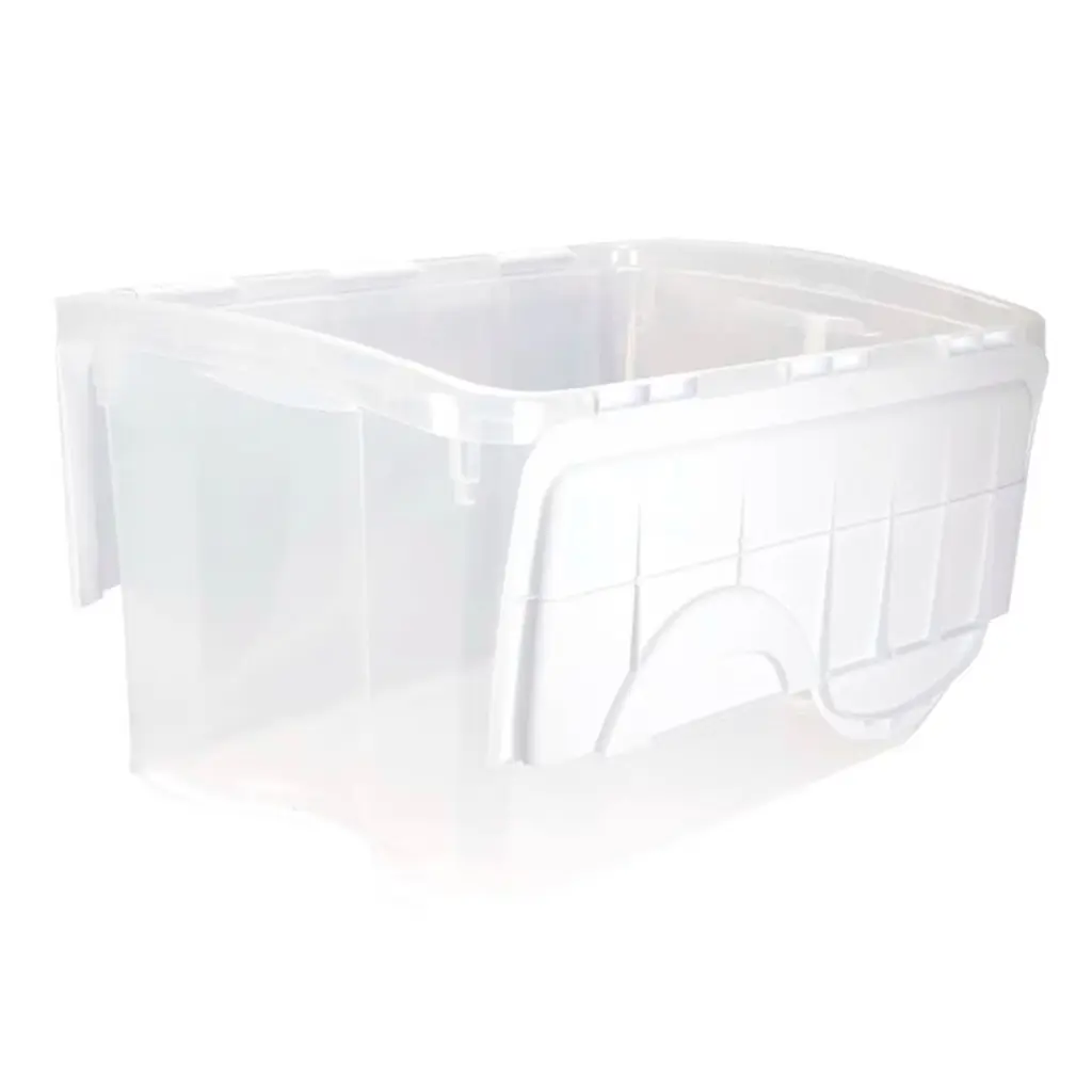 Enjoy a more convenient home organization with this 12-Pack 48-Quart Clear Hinged Lid Storage Boxes which are the perfect all-purpose storage solution. The attached hinged lids allow for easy access to contents and will not be misplaced when opened. Integrated, contoured handles provide a comfortable grip for transporting, and a see-through base makes identifying contents quick and convenient. These boxes have the capacity to allow for ample storage of your seasonal clothing, extra linens, toys, stuffed animals and so much more. The unique design of the Sterilite hinged lid storage box also allows for safe and sturdy stackable storage for the ultimate space saver. The designers at Sterilite ensure that you will never lose your lid again with this wonderful hinged lid storage box. The wing lid storage box opens on both sides so you have plenty of room to work when packing, unpacking, or searching for an item that someone mistakenly packed. Give your home space the make-over it deserves with this 12-Pack Sterilite Single 48-Quart Clear Hinged Lid Storage Tote Container.