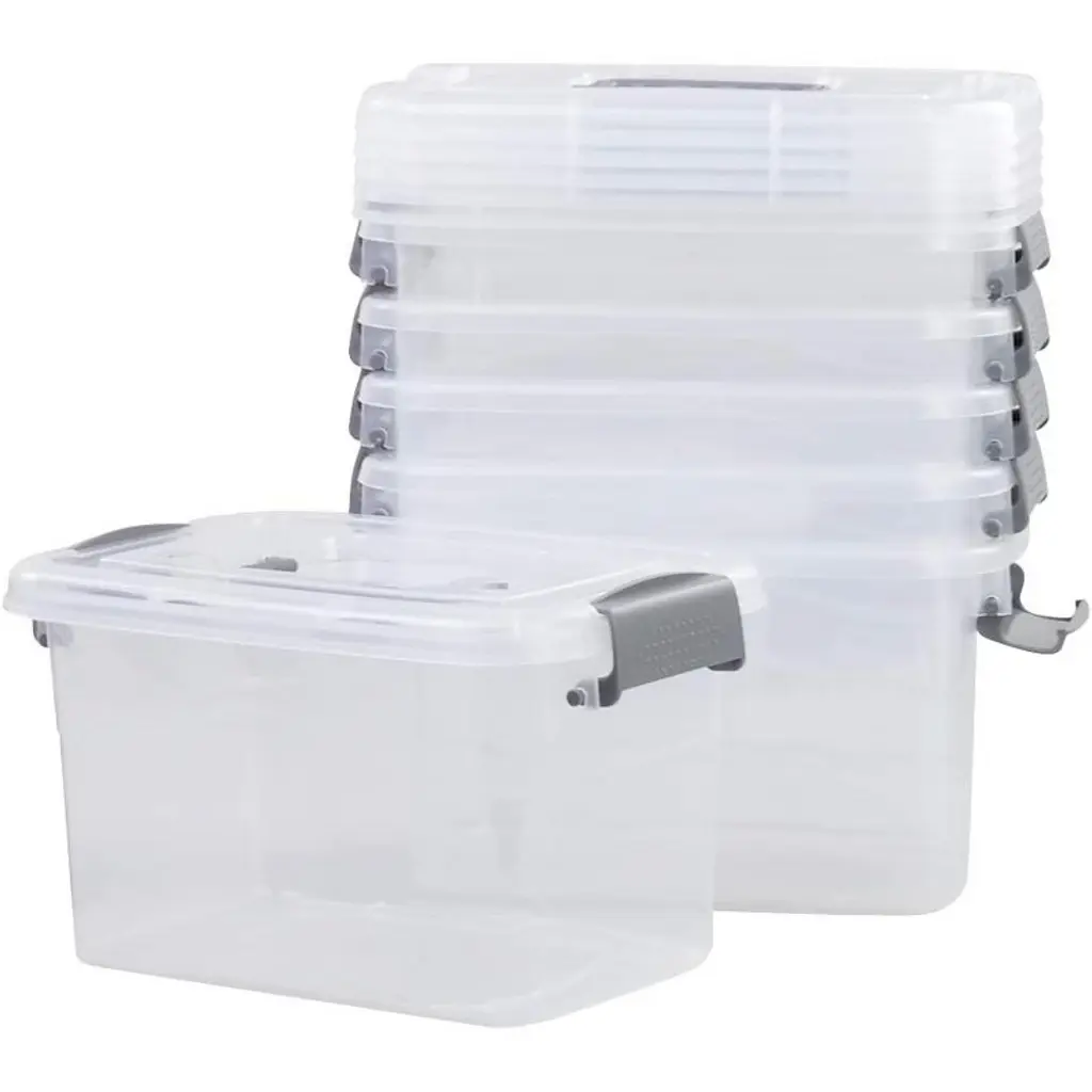 Sterilite 6 Pack 64 Quart Latching Box, Clear Plastic Stackable Storage Bin Container With Latch Lid For Home Garage Organization, Mindful Mint