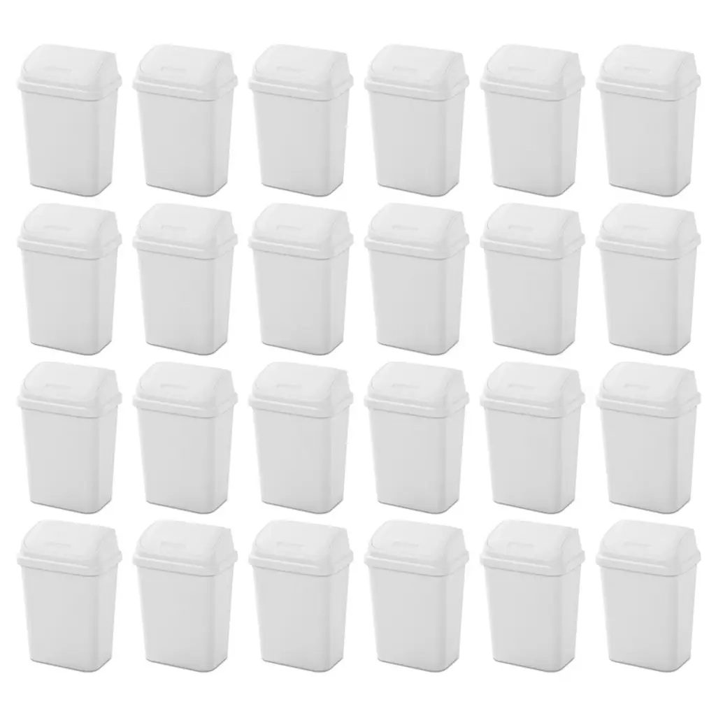 Sterilite 7.8 Gallon Swingtop Wastebasket, Plastic Trash Can With Lid And Compact Design For Kitchen, Office, Dorm, Or Laundry Room, White (24 Pack)