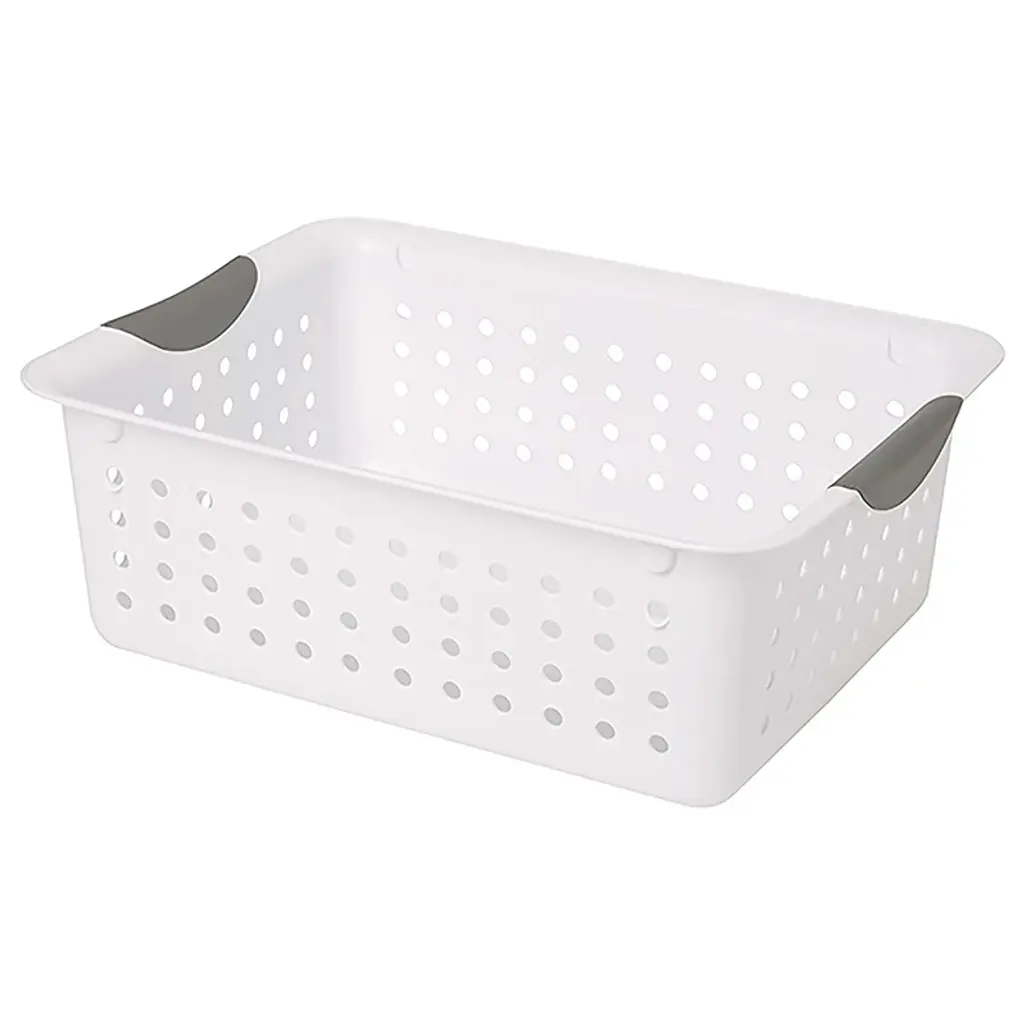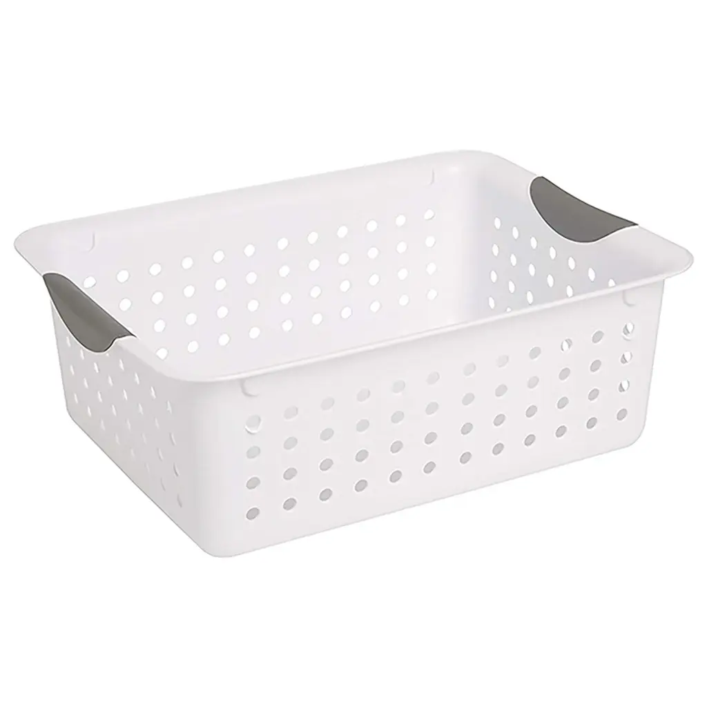 Keep your home office, kitchen, or closet neat and organized effortlessly with ideal storage totes. The pack of 6 Sterilite Medium Ultra Plastic Storage Organizer Basket is ideal for a wide variety of uses including organizing countertops, kitchen cabinets, pantries, and shelving around the home. Contoured handles allow for a comfortable grip while transporting or reorganizing your storage baskets. Ventilation holes provide ideal airflow while also letting you see the contents of your storage bin, so you can find what you are looking for easily. A smooth exterior and interior finish ensure minimal dust collection for simple and easy cleaning and maintenance. An open, no-lid design provides maximum convenience while grabbing stored and organized items. Ideal for storing CDs, DVDs, laundry, or office supplies, the pack of 6 Sterilite Medium Ultra Baskets are great for the garage, crafts, toys, games, and even fresh pantry items too. Just about anywhere a person needs to control some clutter, these storage baskets from Sterilite have you covered.