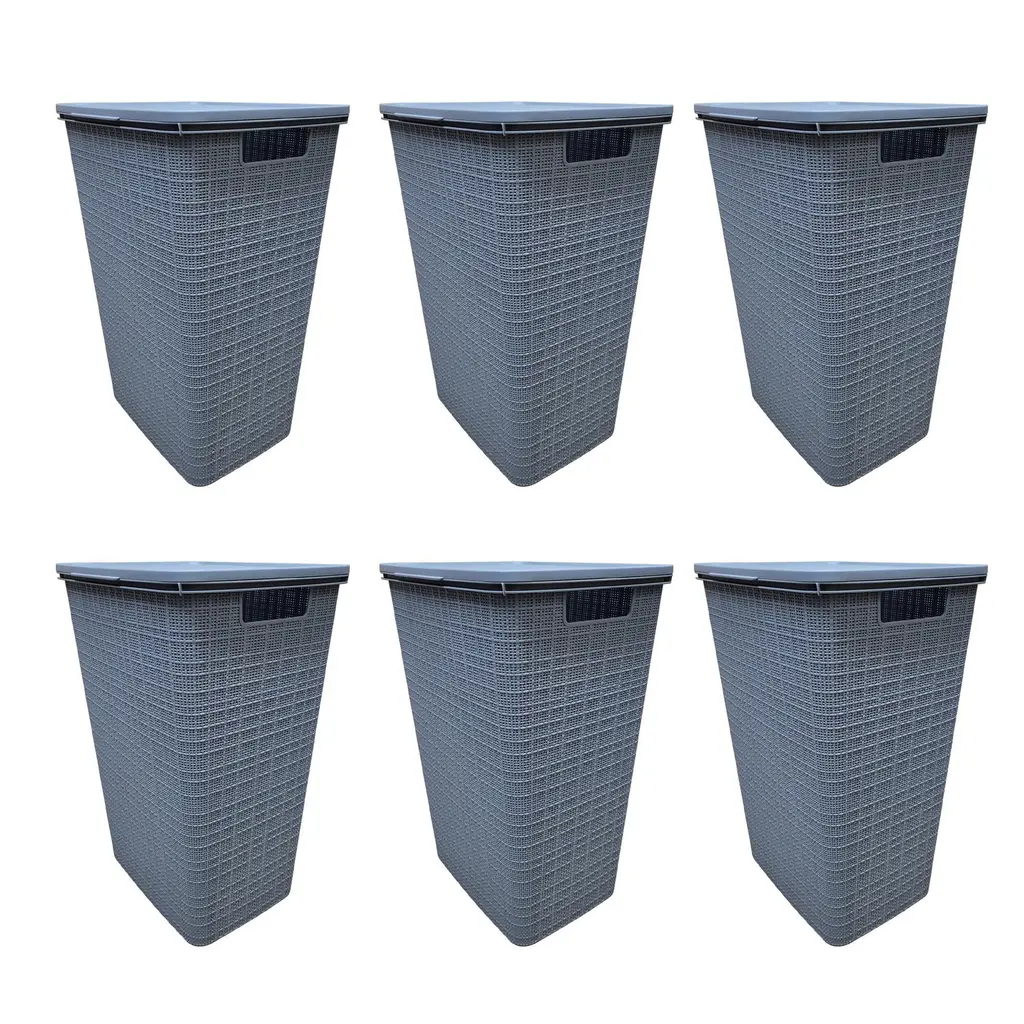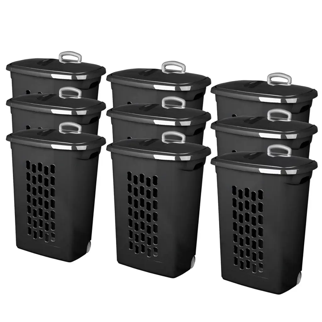Sterilite Ultra Laundry Hamper, Wheeled Plastic Clothes Bin With Retractable Secure Grip Handle, Reinforced Rim, And Flip-top Lid, Black, 9 Pack