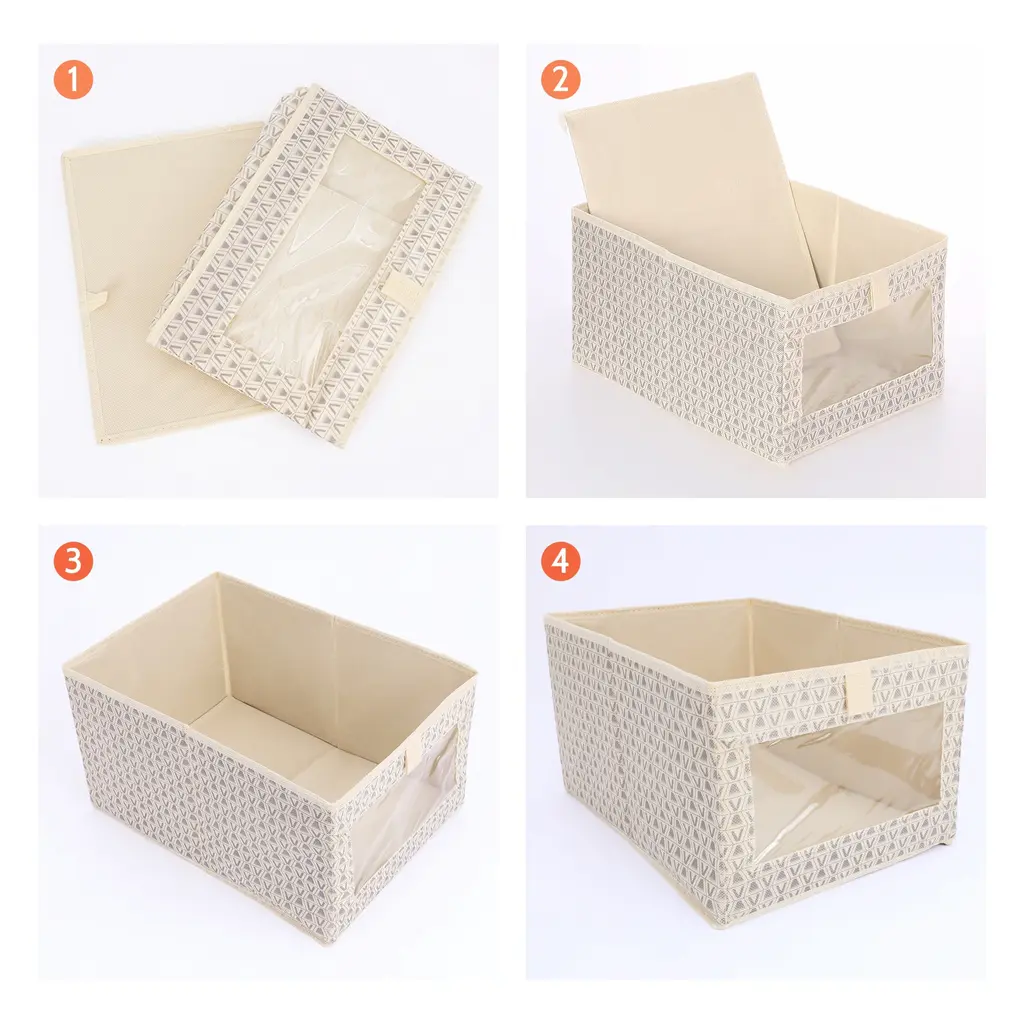 Premium Material: The cube storage organizer is made from good quality fabric and reinforced with a sturdy MDF bottom board. The solid construction enables the shelf storage bins to stand upright without support, even when emptyCollapsible Design: The storage box can be folded flat when not in use to save space or transport. The large durable blanket basket for organizing various items, including clothing, towels, blankets, pet supplies, books, magazines, albums, DVDs, office and craft supplies, etcSpacious Capacity: Our organization bin measures 14.2x9.8x7.9" and 17.3x11.8x7.9". This large size enables you to store a wide variety of items to keep your home tidy and organizedEasy To Care: The large cube organizer is sturdy and has no odor and they are not machine washable. Lined with a thin linen fabric, linen closet organizer and storage is easy to clean, just wipe it with a damp sponge or clothVersatile Use Cubby Bin: Use the collapsible storage bin in the room, playroom, laundry area, closet, storage room, etc. Sit cube organizer bin on the floor, in the closet, bookcase, desk, shelving area, cubbies, and collage dorm room, classroom decor, and towel organizerOur baskets provide attractive, lightweight solutions for all your storage and organization needs while keeping household items tidy and organized - Complete storage bin, closet organizers, nurseries, and more.These fabric storage baskets are easy to carry or remove on a shelf. They could work well as drawers, open-top bins, or storage baskets for shelves.