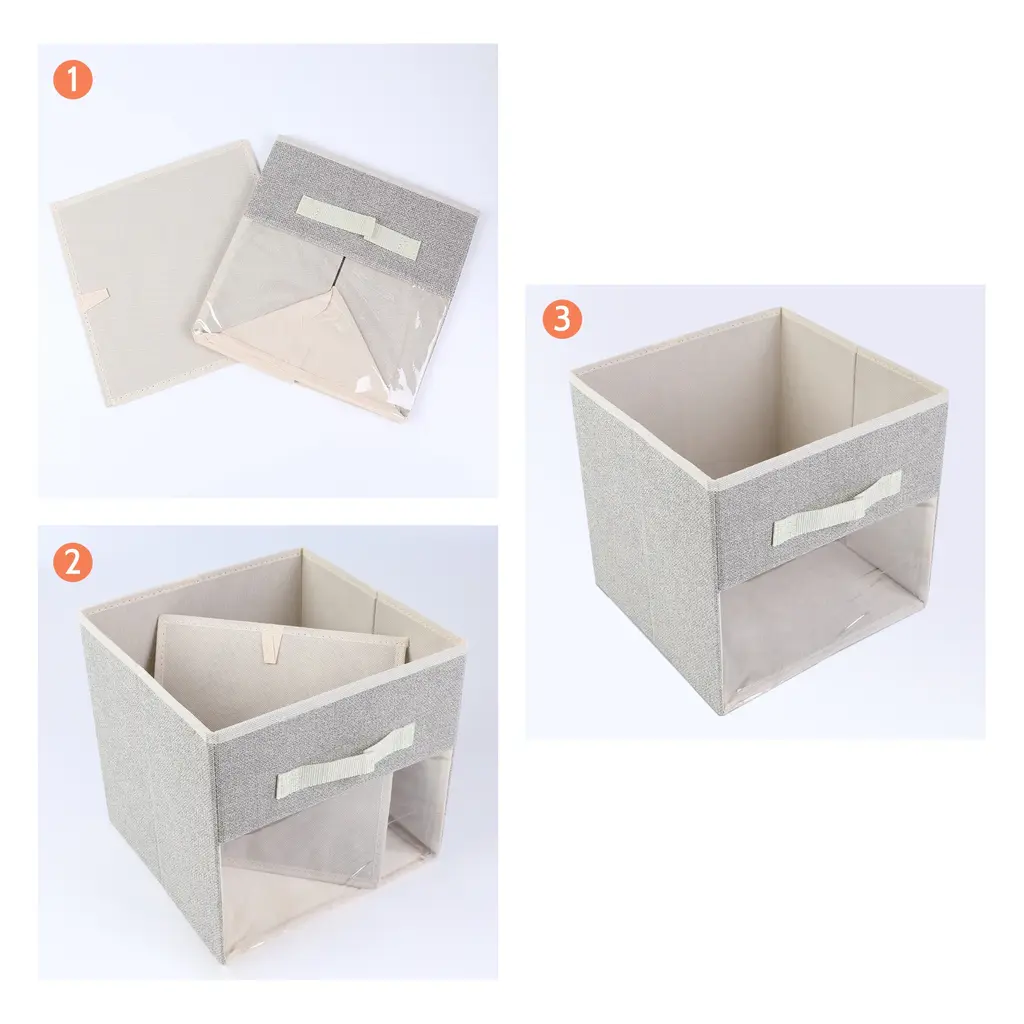 Premium Material: The cube storage organizer is made from good quality fabric and reinforced with a sturdy MDF bottom board. The solid construction enables the shelf storage bins to stand upright without support, even when emptyCollapsible Design: The storage box can be folded flat when not in use to save space or transport. The large blanket basket for organizing various items, including clothing, towels, blankets, pet supplies, books, magazines, albums, DVDs, office and craft supplies, etcSpacious Capacity: Our organization bin enables you to store a wide variety of items to keep your home tidy and organizedEasy To Care: The large cube organizer is sturdy and has no odor and they are not machine washableVersatile Use Cubby Bin: Use the collapsible storage bin in the room, playroom, laundry area, closet, storage room, etc. Sit cube organizer bin on the floor, in the closet, bookcase, desk, shelving area, cubbies, and collage dorm room, classroom decor and towel organizer
