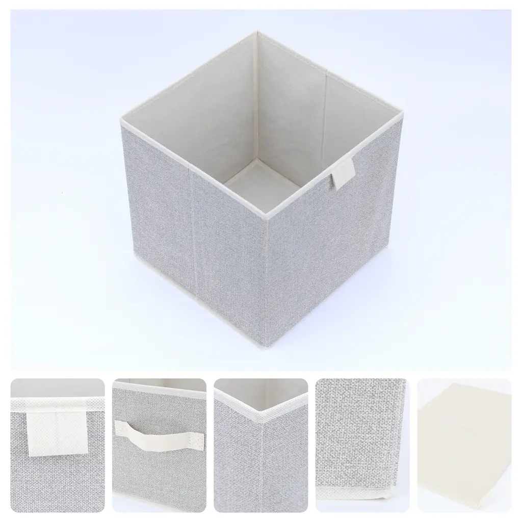 Premium Material: The cube storage organizer is made from good quality fabric and reinforced with a sturdy MDF bottom board. The solid construction enables the shelf storage bins to stand upright without support, even when emptyCollapsible Design: The storage box can be folded flat when not in use to save space or transport. The large blanket basket for organizing various items, including clothing, towels, blankets, pet supplies, books, magazines, albums, DVDs, office and craft supplies, etcSpacious Capacity: Our organization bin measures 11" x 11" x 8", 15.8" x 11" x 8" and 12"x12"x12". This large size enables you to store a wide variety of items to keep your home tidy and organizedEasy To Care: The large cube organizer is sturdy and has no odor and they are not machine washable. Lined with a thin linen fabric, linen closet organizer and storage is easy to clean, just wipe it with a damp sponge or clothVersatile Use Cubby Bin: Use the collapsible storage bin in the room, playroom, laundry area, closet, storage room, etc. Sit cube organizer bin on the floor, in the closet, bookcase, desk, shelving area, cubbies, and collage dorm room, classroom decor and towel organizerOur baskets provide attractive, lightweight solutions for all your storage and organization needs while keeping household items tidy and organized - Complete storage basket, closet organizers, nurseries, and more.These fabric storage bins are easy to carry or remove on a shelf. They could work well as drawers, open-top bins, or storage baskets for shelves.