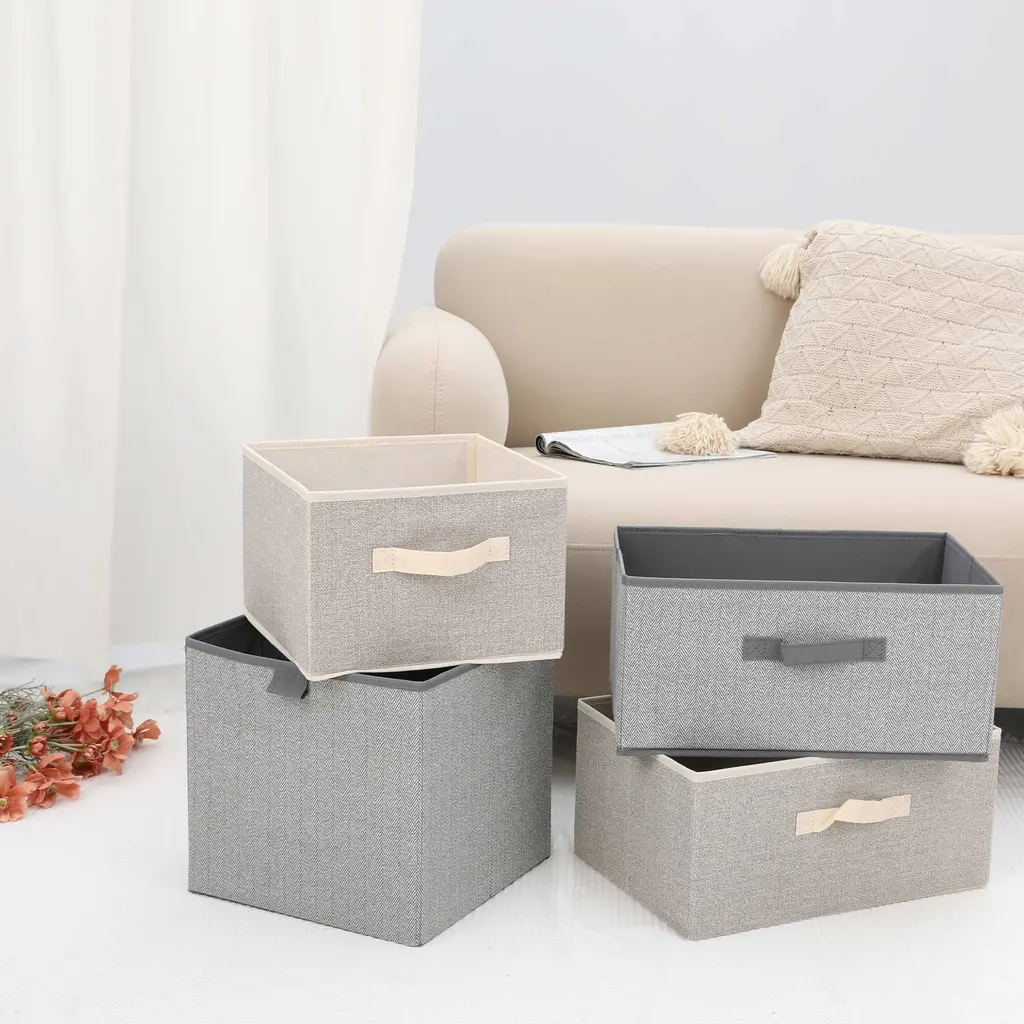 Premium Material: The cube storage organizer is made from good quality fabric and reinforced with a sturdy MDF bottom board. The solid construction enables the shelf storage bins to stand upright without support, even when emptyCollapsible Design: The storage box can be folded flat when not in use to save space or transport. The large blanket basket for organizing various items, including clothing, towels, blankets, pet supplies, books, magazines, albums, DVDs, office and craft supplies, etcSpacious Capacity: Our organization bin measures 11" x 11" x 8", 15.8" x 11" x 8" and 12"x12"x12". This large size enables you to store a wide variety of items to keep your home tidy and organizedEasy To Care: The large cube organizer is sturdy and has no odor and they are not machine washable. Lined with a thin linen fabric, linen closet organizer and storage is easy to clean, just wipe it with a damp sponge or clothVersatile Use Cubby Bin: Use the collapsible storage bin in the room, playroom, laundry area, closet, storage room, etc. Sit cube organizer bin on the floor, in the closet, bookcase, desk, shelving area, cubbies, and collage dorm room, classroom decor and towel organizerOur baskets provide attractive, lightweight solutions for all your storage and organization needs while keeping household items tidy and organized - Complete storage basket, closet organizers, nurseries, and more.These fabric storage bins are easy to carry or remove on a shelf. They could work well as drawers, open-top bins, or storage baskets for shelves.