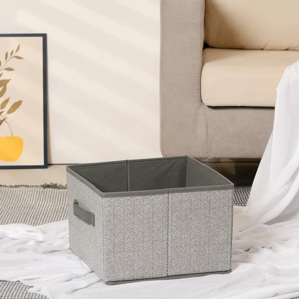 Storage Cube, Storage Bin With Handles For Shelves Closet, 1 Pack Collapsible Storage Basket For Organizing Clothes Blankets - Grey - 11*11*8in