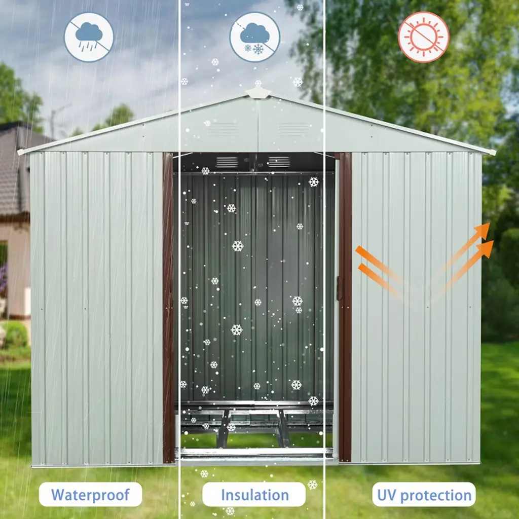 This large, waterproof deck box is the perfect outdoor storage solution for cushions, throw pillows, garden tools, and more. With a 120-gallon storage capacity and a lockable lid, it offers security and ample space. Designed for durability with galvanized steel reinforcement and user-friendly features, it's a versatile addition to any patio.Function Bullet Points:🏡 Ideal Outdoor Storage Box: Featuring a lockable lid, this deck box offers a storage capacity of 120 gallons and can support a maximum static weight of 440 lbs, making it perfect for storing a variety of outdoor items securely.🛋️ Easy to Use: The outdoor storage container includes portable side handles and mobility rollers for easy movement. It also comes with labor-saving pistons for additional support and strength, ensuring effortless operation.🛋️ Waterproof Metal Construction: Crafted with a slight slope design, the surface coating is made of durable materials with galvanized steel reinforcement. It effectively keeps out mice and squirrels, prevents water accumulation, and resists fading, rusting, and UV damage.🛋️ Durable Hidden Storage: Offering a spacious storage room, this deck box is perfect for patio cushions/pillows, outdoor supplies, pool accessories, and beach towels. It can also double as a patio table or stool, adding versatility to your outdoor space.🔧 Assembly Tip: Please do not fully tighten the bolts before completing the assembly to ensure proper alignment and stability.