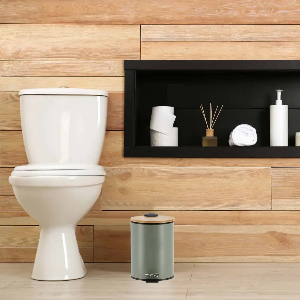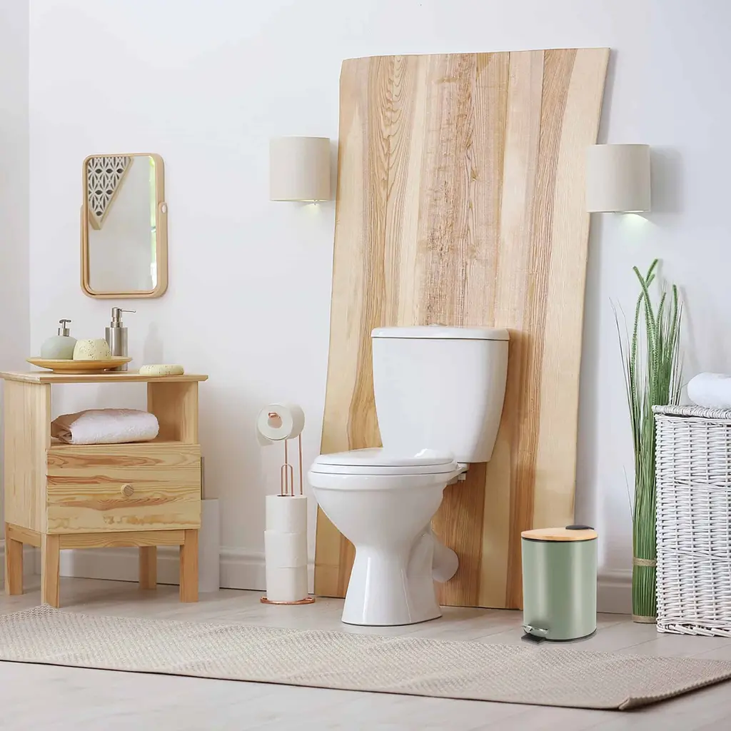 Discover the perfect blend of style and functionality with our Versatile Garbage Can with Bamboo Lid. Designed for modern spaces, it features a compact 2.5 Liters (0.6-gallon) capacity, ideal for bathrooms, kitchens or offices. Additionally, its natural bamboo lid adds a contemporary touch that complements any décor. Moreover, the soft-close lid of this small trash can for bathroom ensures quiet and smooth operation. It prevents noise disturbances in your home or workspace. With a durable pedal, this bathroom garbage can with a lid allows for hands-free operation, enhancing hygiene and convenience. Furthermore, the removable inner bucket makes cleaning and maintenance effortless. Simply lift it out to dispose of waste mess-free. Thanks to its compact size, this small trash can with lid for bathroom fits perfectly in tight spaces, such as under sinks or next to desks. Not only is it functional, but it’s also versatile. Use our small bathroom trash can with lid in bathrooms, bedrooms, kitchens or offices to meet your daily needs. The combination of its sleek finish and bamboo lid makes it a decorative and practical addition to any space. Finally, pair it with other items from the Willis Collection for a cohesive and stylish look in your bathroom or home. Experience the perfect solution for small waste disposal with a design that combines elegance and practicality.