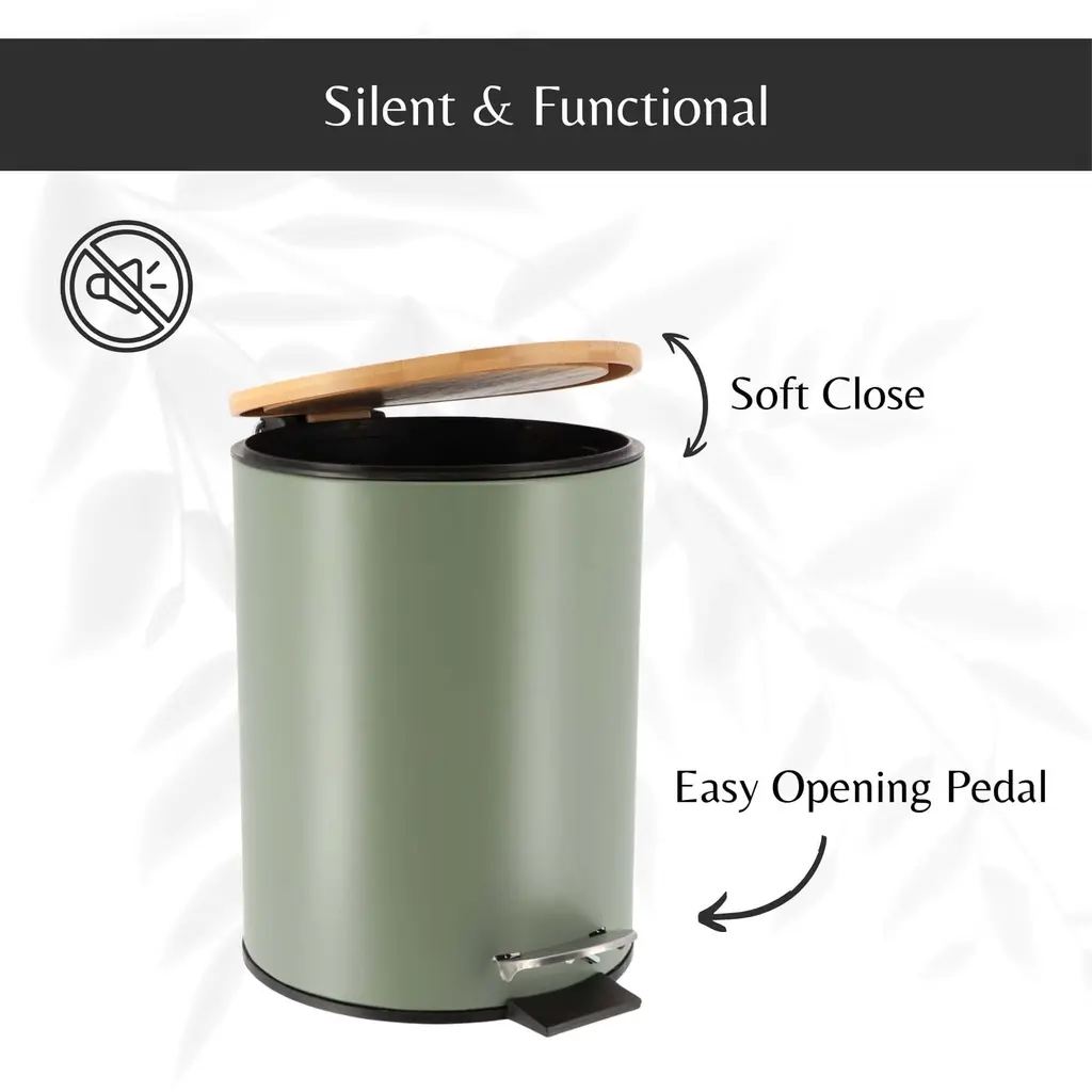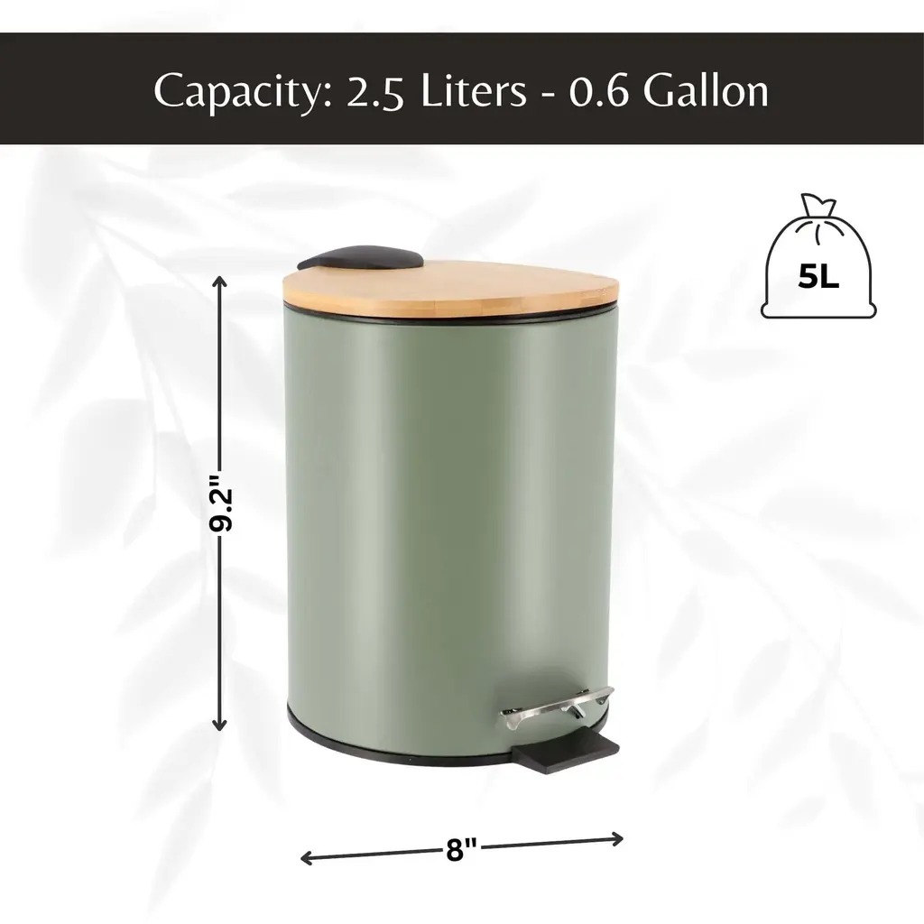 Stylish Trash Can With Bamboo Lid And Pedal, 2.5l Capacity - 9.2" H X 8" L X 8" W - Green