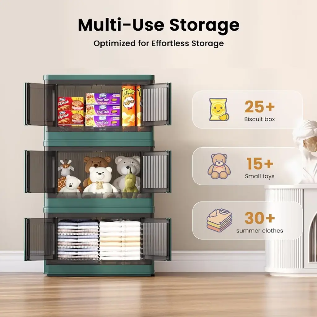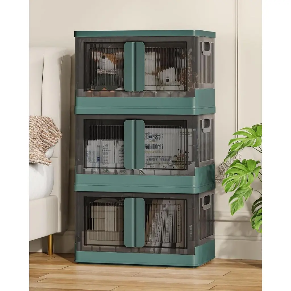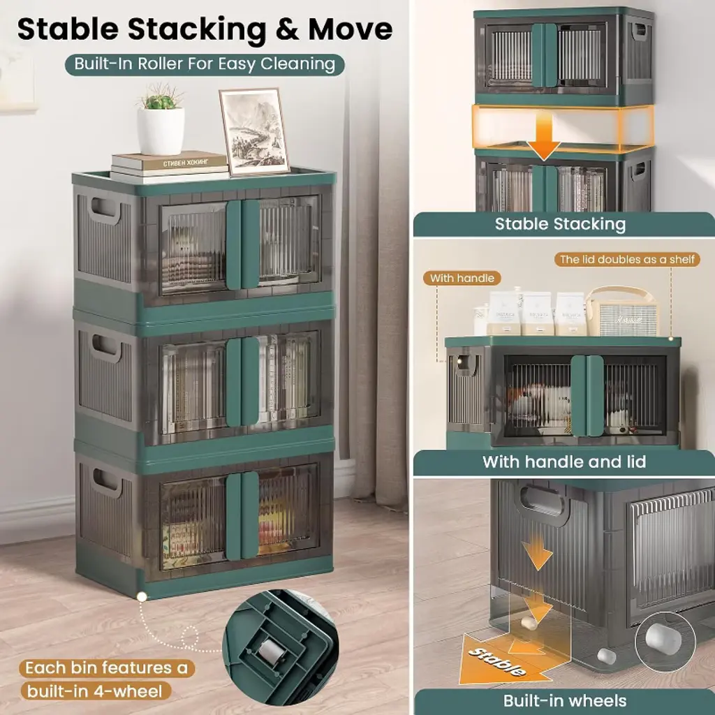 Summit Adventure 8.4gal Collapsible Storage Bins With Lids&wheels-3 Pack Stackable With Doors,heavy-duty Plastic Containers For Home/office,green
