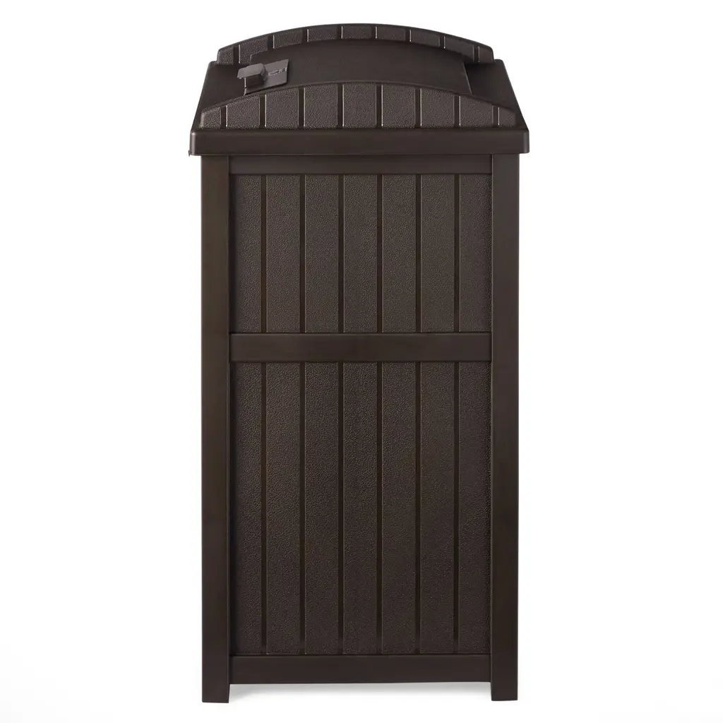 Hide your trash in this 2-pack of 30-Gallon Hideaway Trash Waste Bins for Outdoor from Suncast. These stylish trash cans have a securely latching lid that keeps trash hidden inside, and protected from the elements and invading, hungry outsiders. These trash cans stand 31.5 inches tall and use standard 30 to 33-gallon trash bags, making this ideal for backyard patios and decks. Made of long-lasting, durable materials, these outdoor trash cans are made to withstand unexpected weather conditions and stay dry through the rainy season. Featuring a solid bottom panel, these trash bins will stay securely weighted down and prevents leakage. You can easily assemble these trash cans without needing any tools. With a stylish, wainscoting design, these hideaway trash cans will match most outdoor furniture and other decors. Use this 2-pack of 30-Gallon Hideaway Trash Waste Bins for Outdoor from Suncast for a convenient way to throw away trash on your patio.