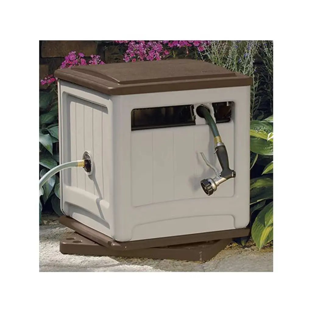 Keep the yard looking neat and makes watering plants easy with a hose reel that swivels to aid dispensing. Walk anywhere your hose reaches and this reel swivels on its base to make your watering chore much lighter on your muscles. Enjoy the effortless roll out and take up, as well as the convenient tracking. This reel looks great plus you get excellent watertight flow from the connection. Keep your hose untangled and out of sight.