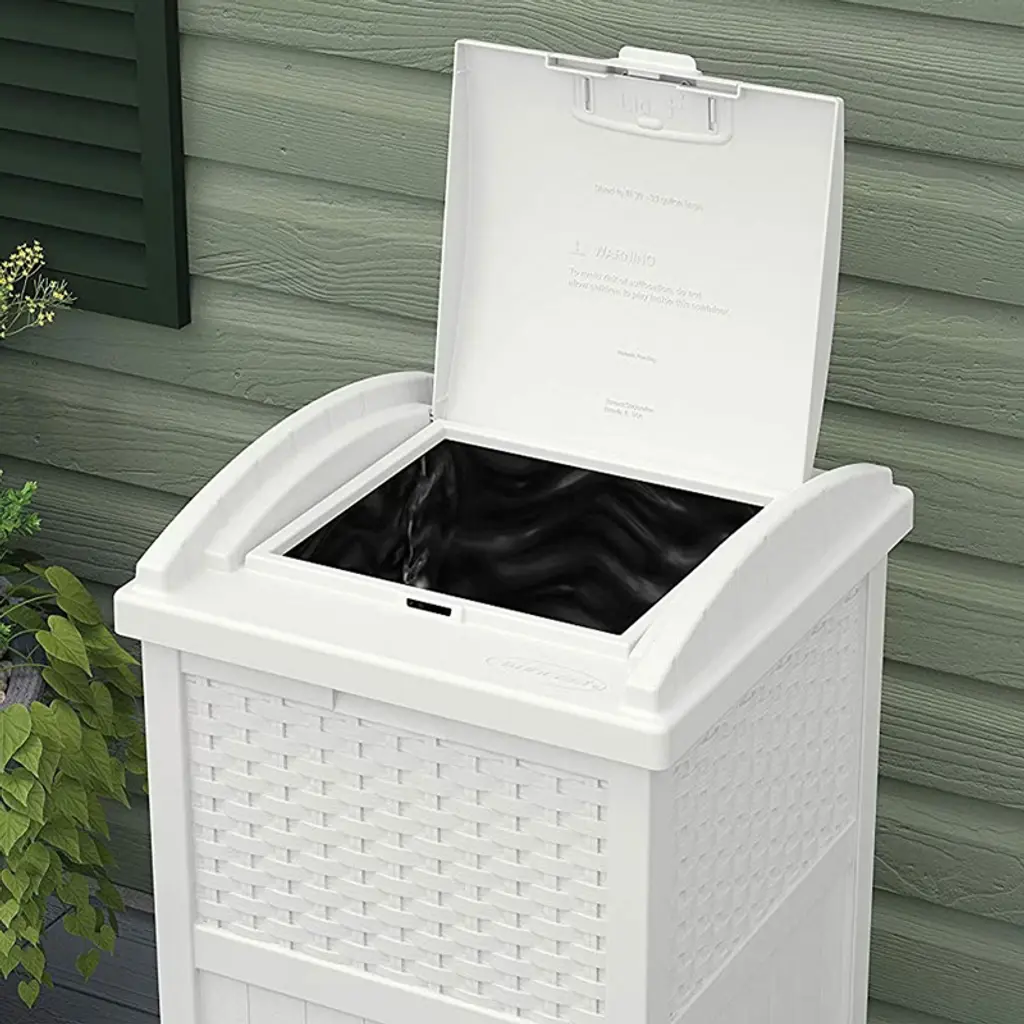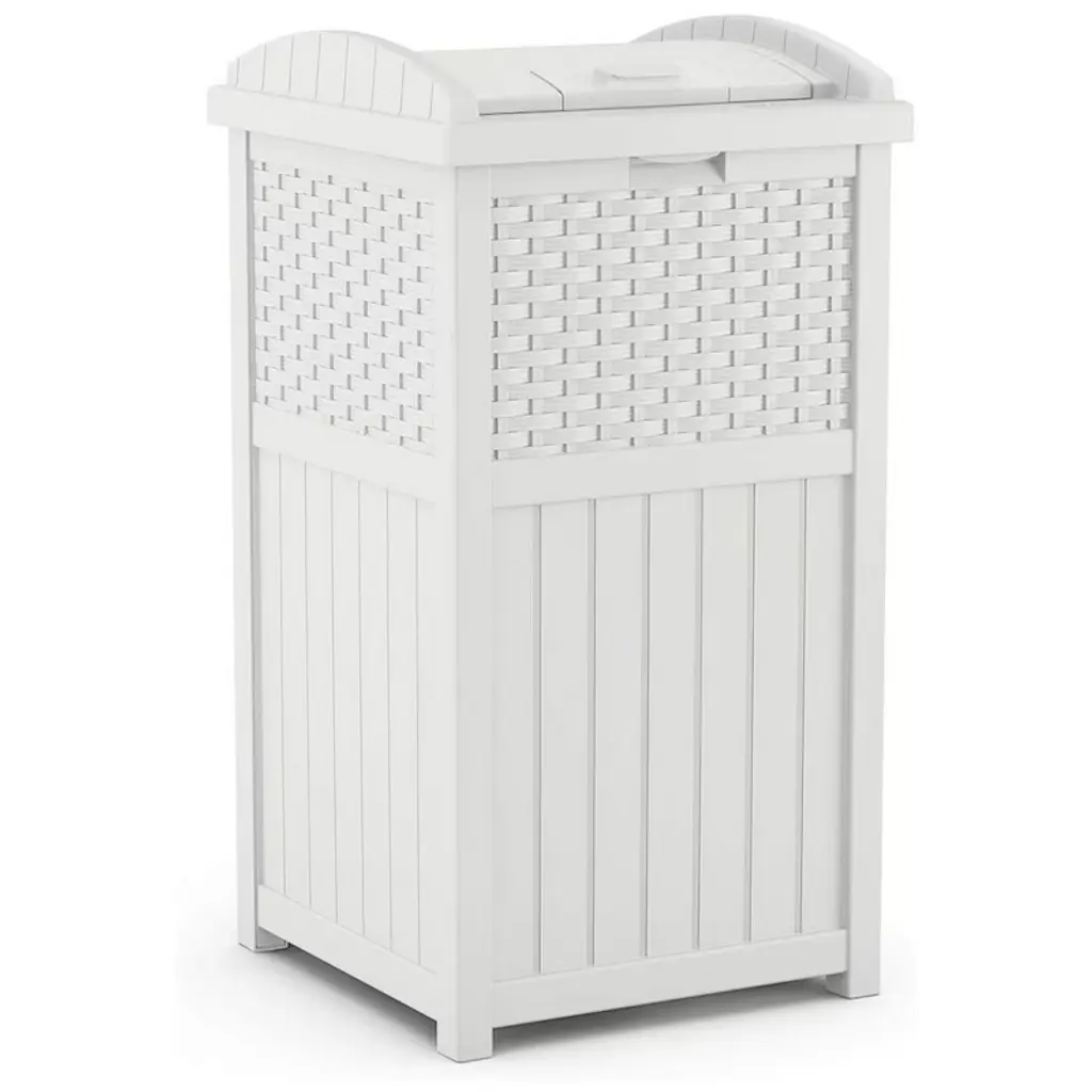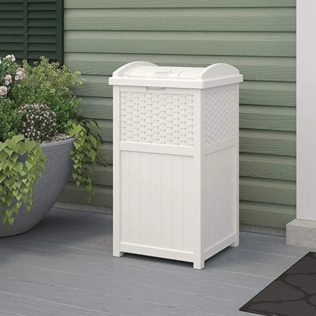 Don't ruin the appearance of your front lawn or backyard with a messy, unsightly garbage can. Instead, opt for a practical and stylish approach to keeping your trash in one place with the 3-pack of Suncast Trashcan Hideaway Outdoor 33-Gallon Garbage Waste Bin. Constructed of durable material for a strong and stay-dry exterior, these hideaway trash bins can hold between 30 to 33-gallon trash bags. They feature a stylish wicker design that's not only practical but looks good too. The sturdy base won't tip over easily during storms or during periods of high wind, while the material helps keep the can dry all year long. Perhaps the best part of these trash cans is the latching lids. The lids latch to the can so garbage won't blow out of the can and cause a big mess in your front or backyard. That latching lids could save you time and plenty of frustration. Keep your trash in a singular location with this 4-pack of Trashcan Hideaway Outdoor 33-Gallon Garbage Waste Bins from Suncast.