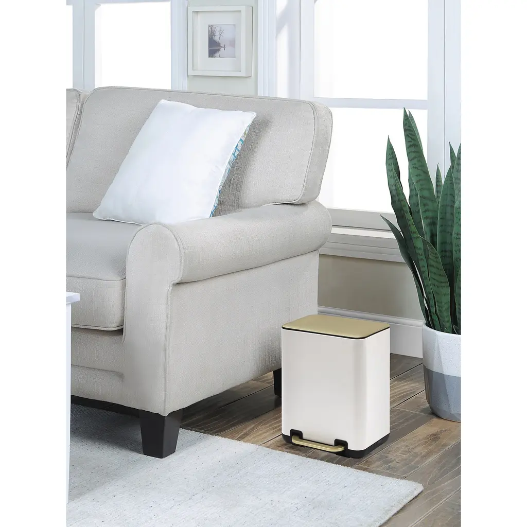 Sunnypoint 6 Liter / 1.58 Gallon Trash Can - 1.58 Gallon - White With Gold Lid