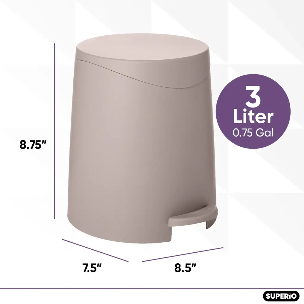 Fits nearly everywhere - Keep your garbage concealed in cupboards, behind counters, or other compact locations to maximize your space. In your bathroom, bedroom, or workplace, this small step on garbage can won't take up much space, yet it looks stylish and easily fits into tight locations. Soft close lid - Unlike any ordinary small trash can, Superio garbage with lid closes slowly and silently, eliminating the loud pounding sound that regular garbage cans create when closing. A great solution for your home waste management. Pedal trash can - The hassle and mess of trying to throw away garbage with your hands full is now a thing of the past. Superio step on trash can features a strong pedal making it perfect to use as bathroom trash can or kitchen trash can. Modern décor - Let Superio transform a common household essential from dull to elegant with this modern trash can, its lid is straight but has a curved outline when opened. It offers a variety of fashionable colors designed to enhance your home decor. Sturdy and easy to clean - Made of high quality, extremely durable and sturdy plastic, it is rust resistant and can surely withstand years of use. Easy to wipe clean, the Superio trash bin with lid can handle cleaning even with a damp cloth.