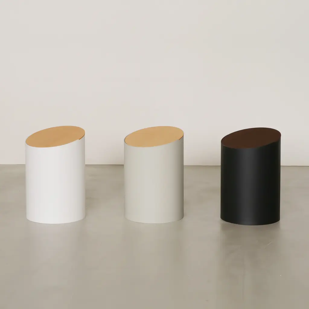 Introducing the Swing Bin, a creation by Moheim that embodies the concept of “An unprecedented waste bin.” This exceptional bin redefines conventional design by eliminating superfluous elements, resulting in an exquisite work of art. At the heart of the Swing Bin’s design is its remarkable lid, which maintains a flawless equilibrium and smoothly tilts, all without the need for complex mechanisms. Adding to its practicality, the lid can be effortlessly removed for your convenience. The main body is composed of durable ABS, while the lid is crafted from luxurious veneered MDF. This meticulous selection of materials ensures both the bin’s longevity and its aesthetic appeal. Please be aware that the lid is crafted from sliced natural wood veneer, which may exhibit slight warping in response to fluctuations in temperature or humidity. Elevate your living or working space with the Swing Bin by Moheim, where artistry and functionality converge seamlessly. Discover a waste bin like no other, a true embodiment of sculptural beauty and practicality.