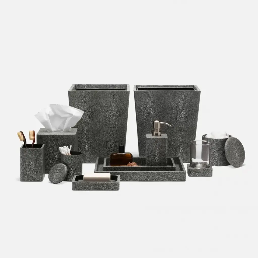 Stunning bath collection in our signature faux shagreen with an elevated rounded corner detail. Appropriate for the most discriminating bathrooms. The designers at Pigeon & Poodle believe the details of a home are just as important as the furniture. A gorgeous toothbrush holder or handcrafted canister can elevate an entire bath, the perfect frame can heighten the feel of a whole space, and a good-looking storage basket can be your look’s missing link. With thoughtful design and top-notch craftsmanship, Pigeon & Poodle create home accessories with the care and attention typically reserved for larger pieces of décor.