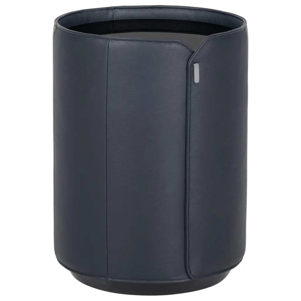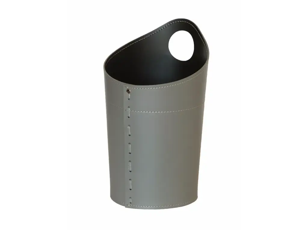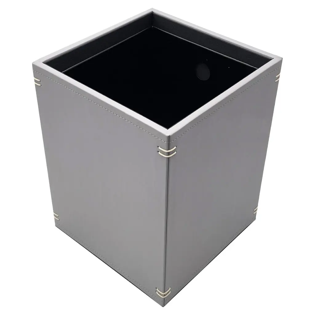 Waste paper bin for office and home of regenerated leather on frame of plywood.