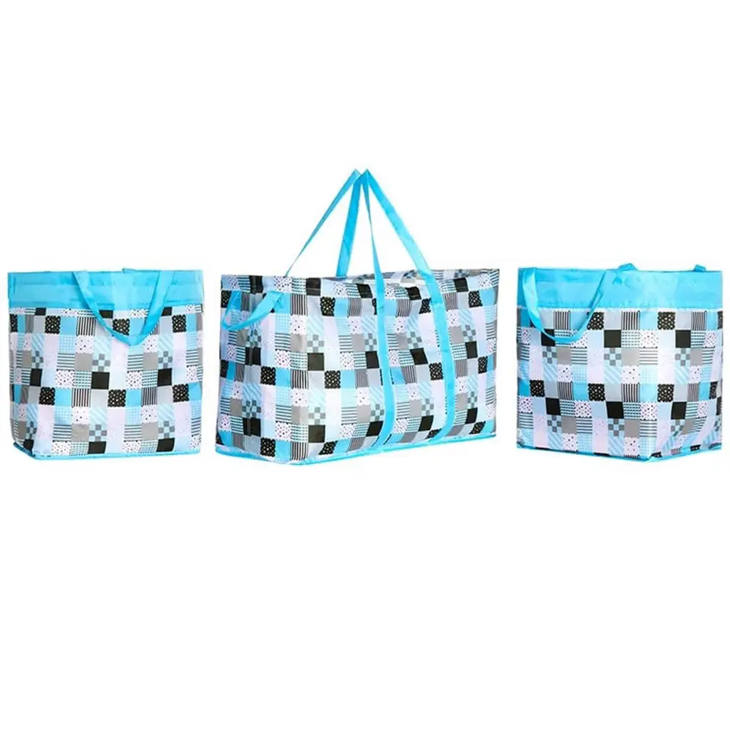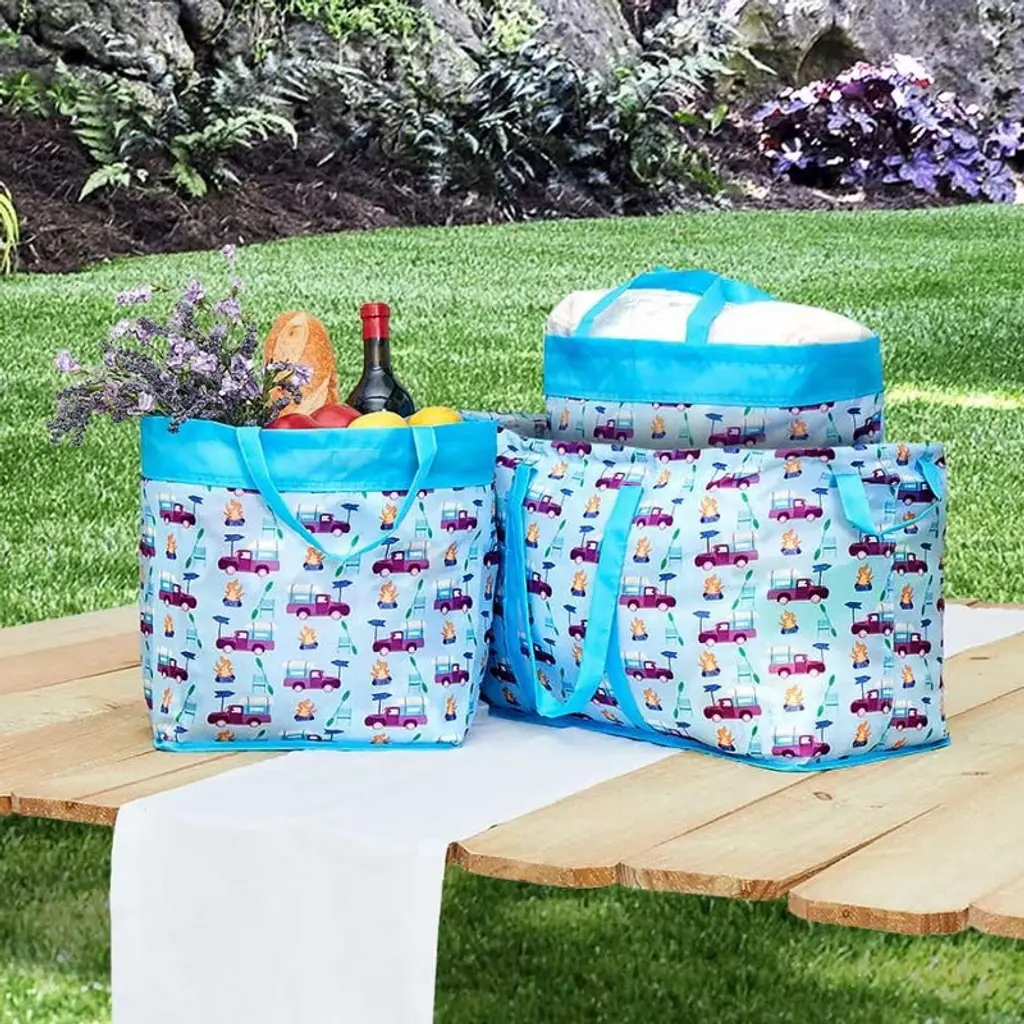 The 3-Pc. Everyday Storage Bins set includes 1 large bin and 2 small bins, providing flexible storage options for various needs. Constructed from sturdy fabric, these bins are designed to withstand everyday use. They feature a vibrant pattern with small, colorful designs, adding a playful touch to any room. Equipped with strong handles, the bins are easy to carry and relocate. Their collapsible construction allows them to fold flat when not in use, saving valuable space. These bins are ideal for organizing toys, books, clothes, or other household items, keeping your space tidy.
