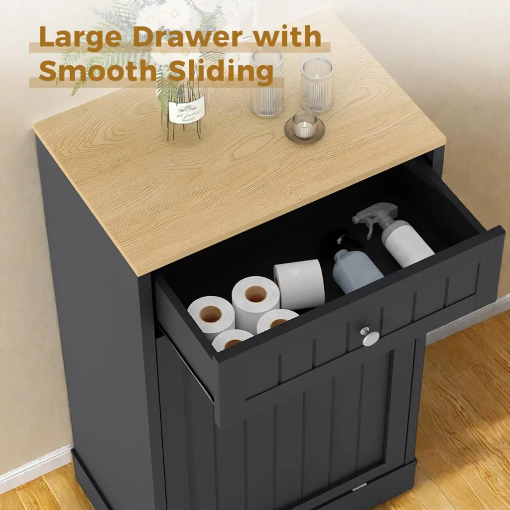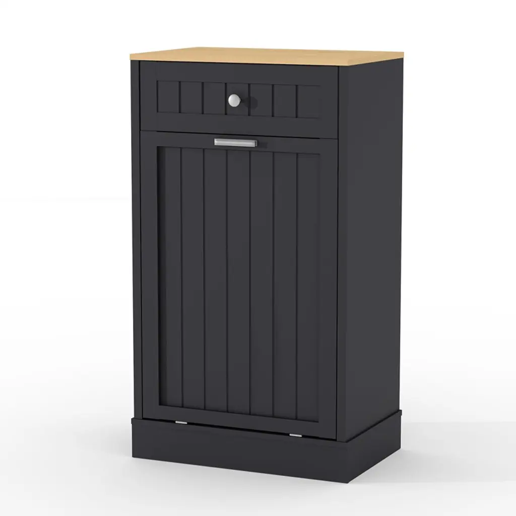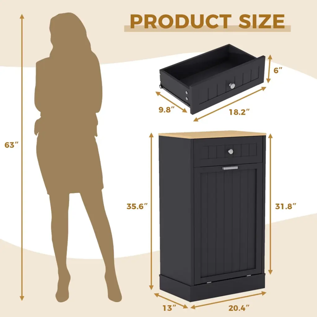 Tilt Out Trash Cabinet, 10 Gallon Kitchen Waste Bins, 1 Door Wood Free Standing Trash Cabinet, Recycling Cabinet With Hideaway Drawer For Living Room