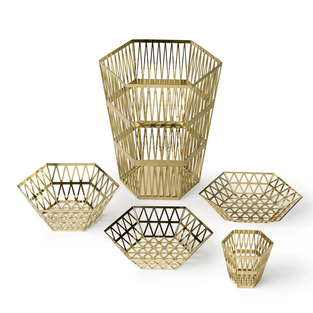 This elegant waste bin in stainless steel was designed by Richard Hutten. It is part of the Tip Top series which consists of hexagonal pieces made of layers of triangles.