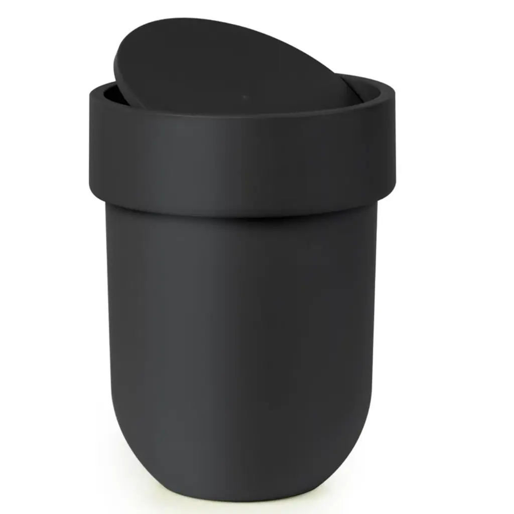 Touch is a modern alternative to the traditional trash can. Touch's soft, matte finish gives it a modern and luxurious feel, while its flat swing lid will keep garbage concealed. Sleek in size, Touch measures 7.67 x 7.67 x 11.81" (19 x 19 x 30 cm), and holds 1.6 gallons (6L), so you won’t have to take out the trash too often. Touch is a part of Umbra's Touch Bath Collection which also includes a toothbrush holder, soap pump, soap dish, and a toilet brush holder. Made with recycled plastics.
