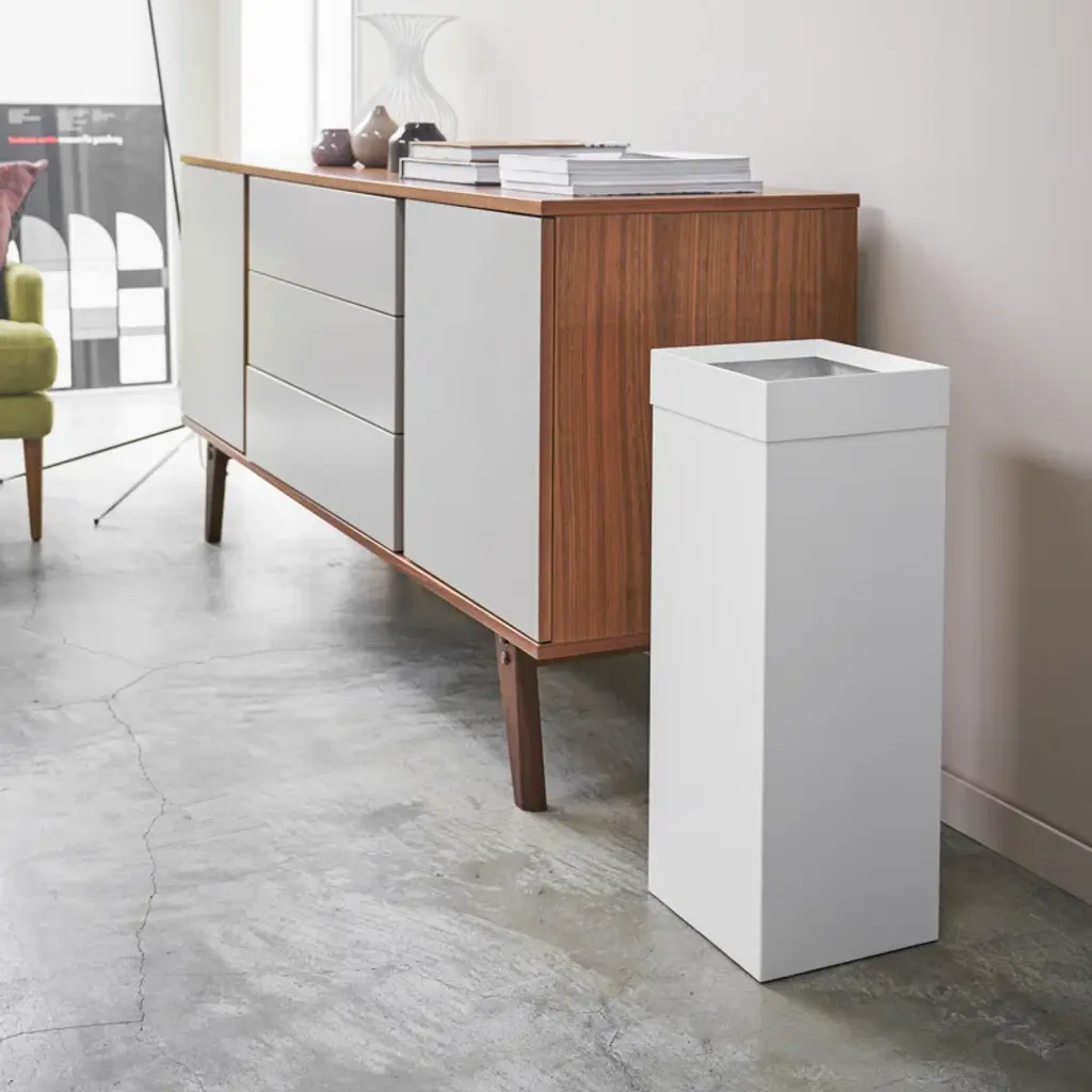 Trash bin getting you down? This waste bin offers much more than meets the eye. The slanted opening cleverly unsightly trash within. An interlocking design pins your trash bag in place while simultaneously hiding the unattractive bin liner. Finally, a handle at the back makes emptying the bin an easy chore. It’s just that smart!
