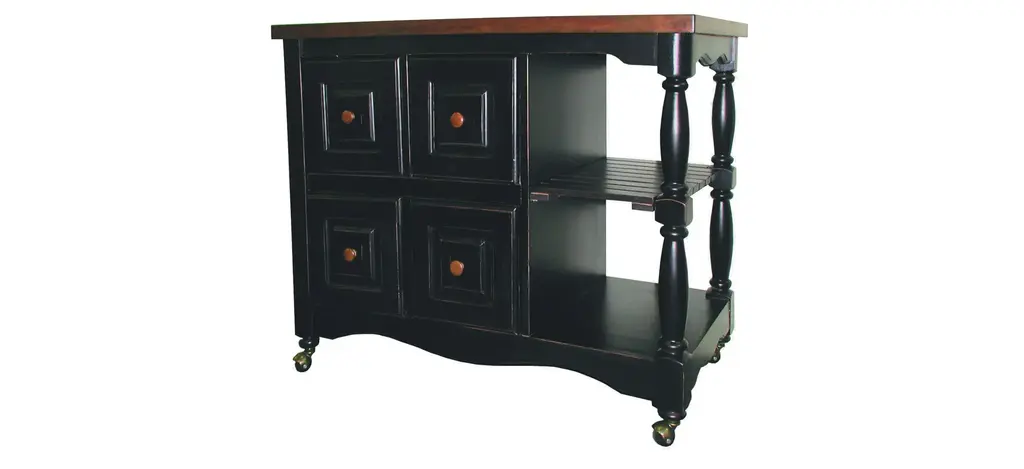 Traditional Kitchen Island With Trash Bin Storage, Black