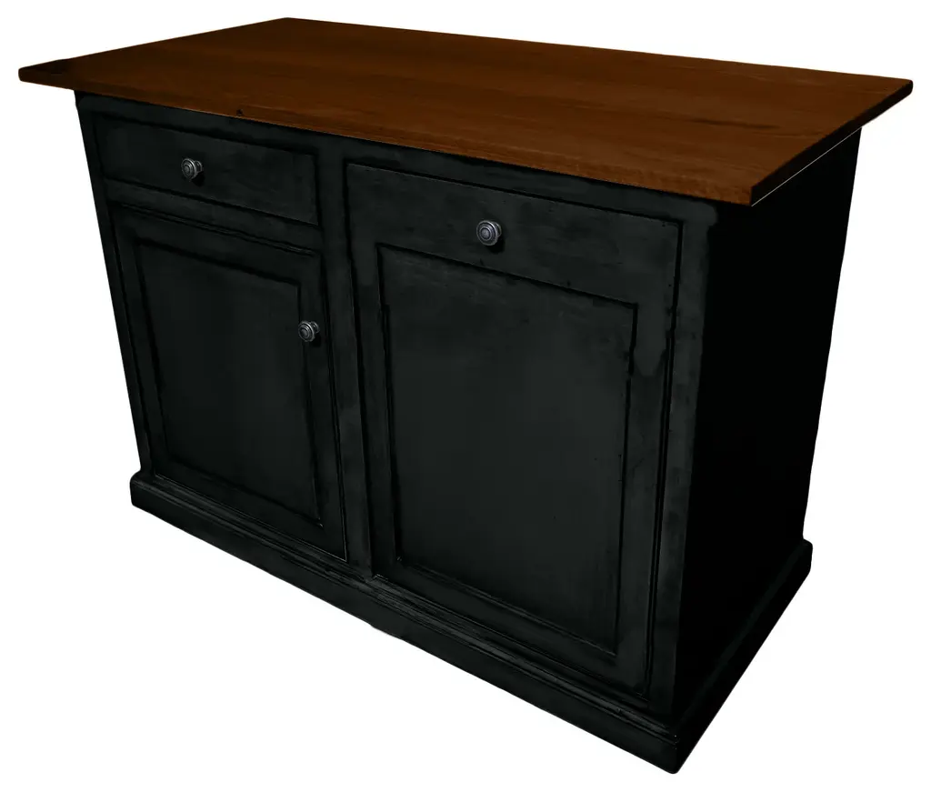 Please be advised Natural Wood variations can cause color variationsSolid Wood Poplar Plank top1 drawer1 Cabinet compartment1 Trash Bin compartmentFully AssembledMade in America