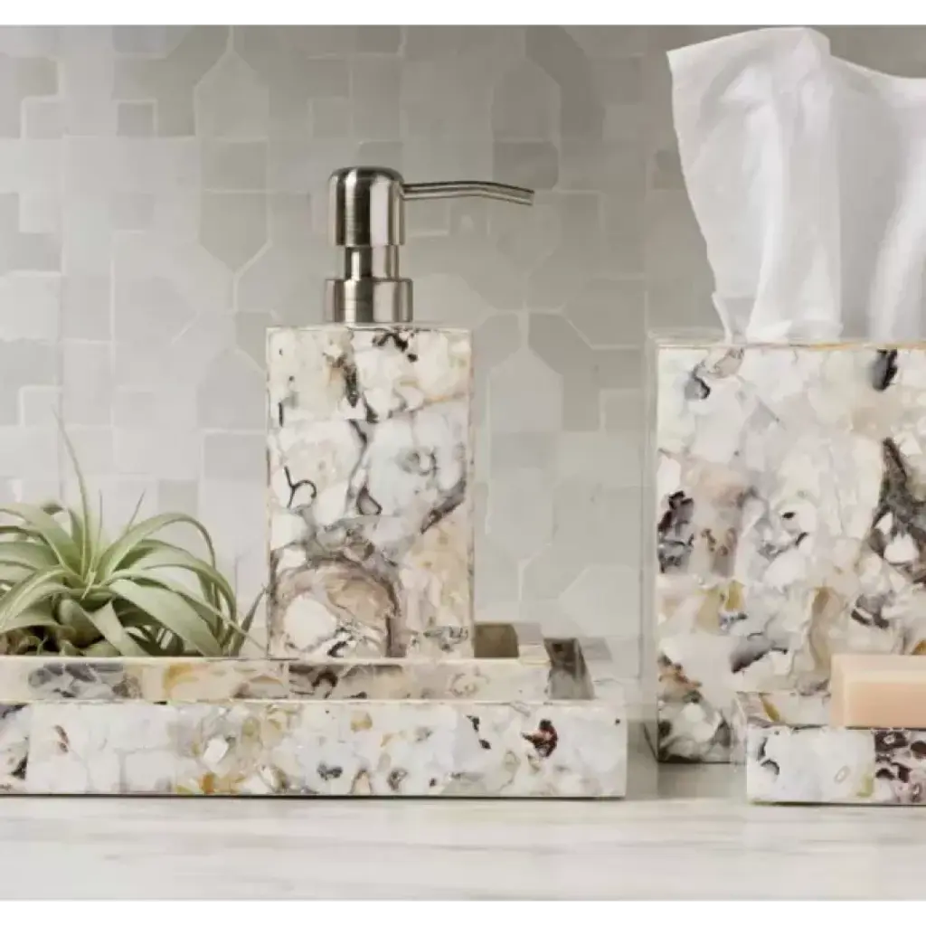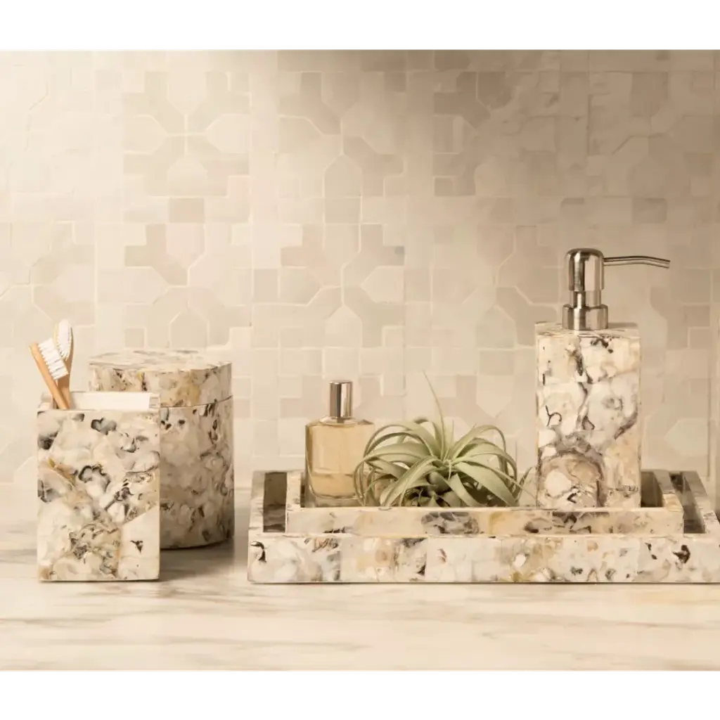 Iridescent shell veneer collection with a smooth surface. The designers at Pigeon & Poodle believe the details of a home are just as important as the furniture. A gorgeous toothbrush holder or handcrafted canister can elevate an entire bath, the perfect frame can heighten the feel of a whole space, and a good-looking storage basket can be your look’s missing link. With thoughtful design and top-notch craftsmanship, Pigeon & Poodle create home accessories with the care and attention typically reserved for larger pieces of décor.