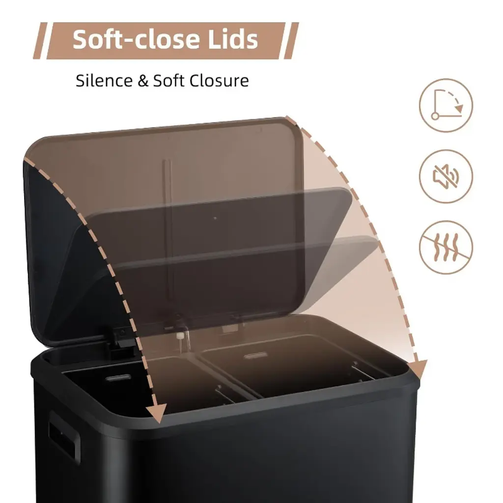 8 Gallon Dual Compartment Trash Can, Stainless Steel Garbage Can with Soft-Close Lid and Two Removable Inner Buckets, 2 x 15L Two Compartment Trash Bin for Kitchen Bedroom Home