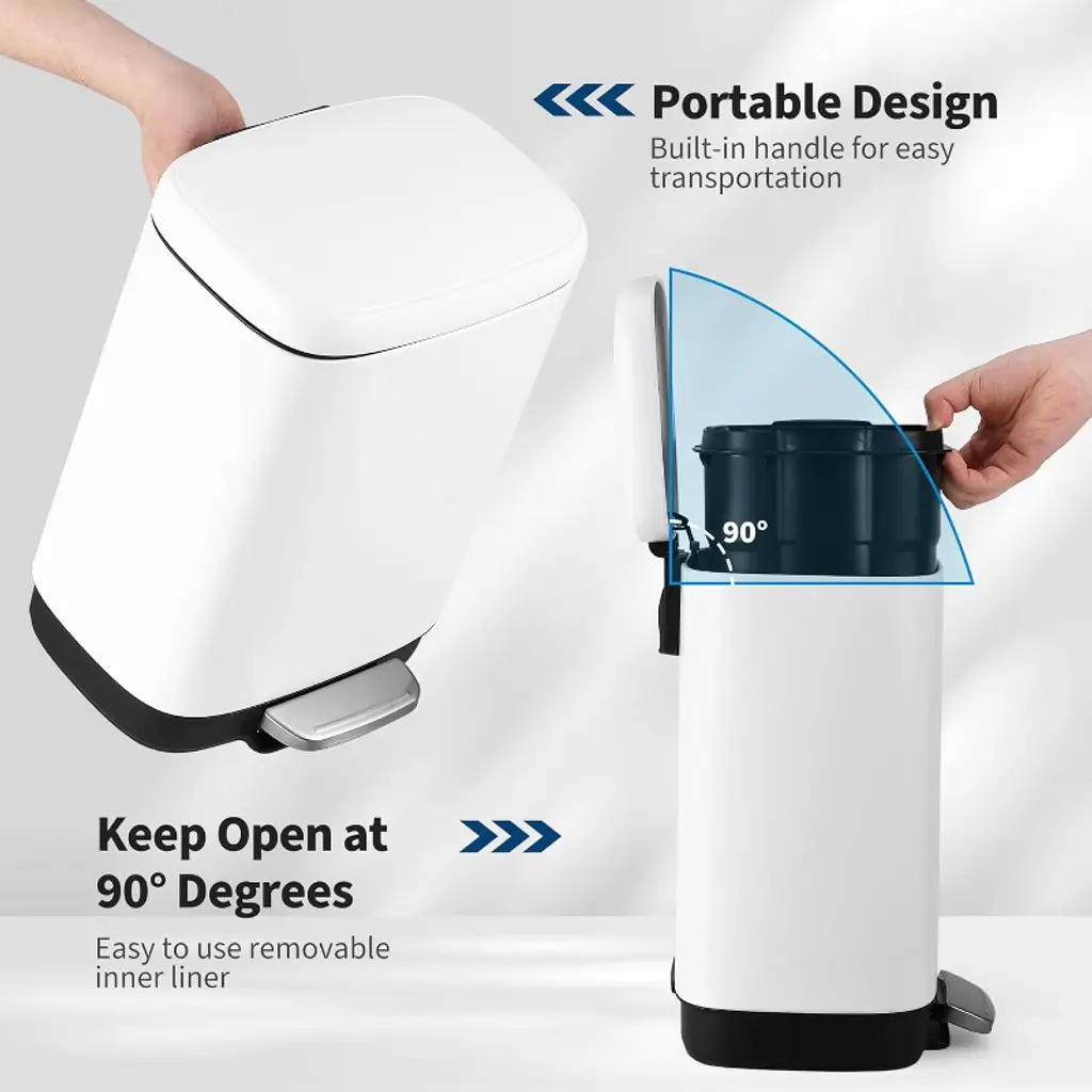 Trash Can with Lid, 3.2 Gal/12L Stainless Steel Bathroom Trash Bin with Soft Close Step-On Pedal & Removable Basket, Rectangular Smudge Resistant Rubbish Bins Kitchen Waste Basket