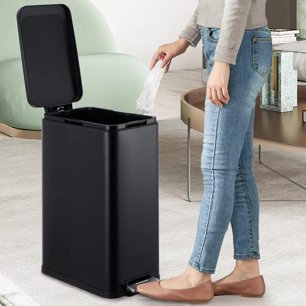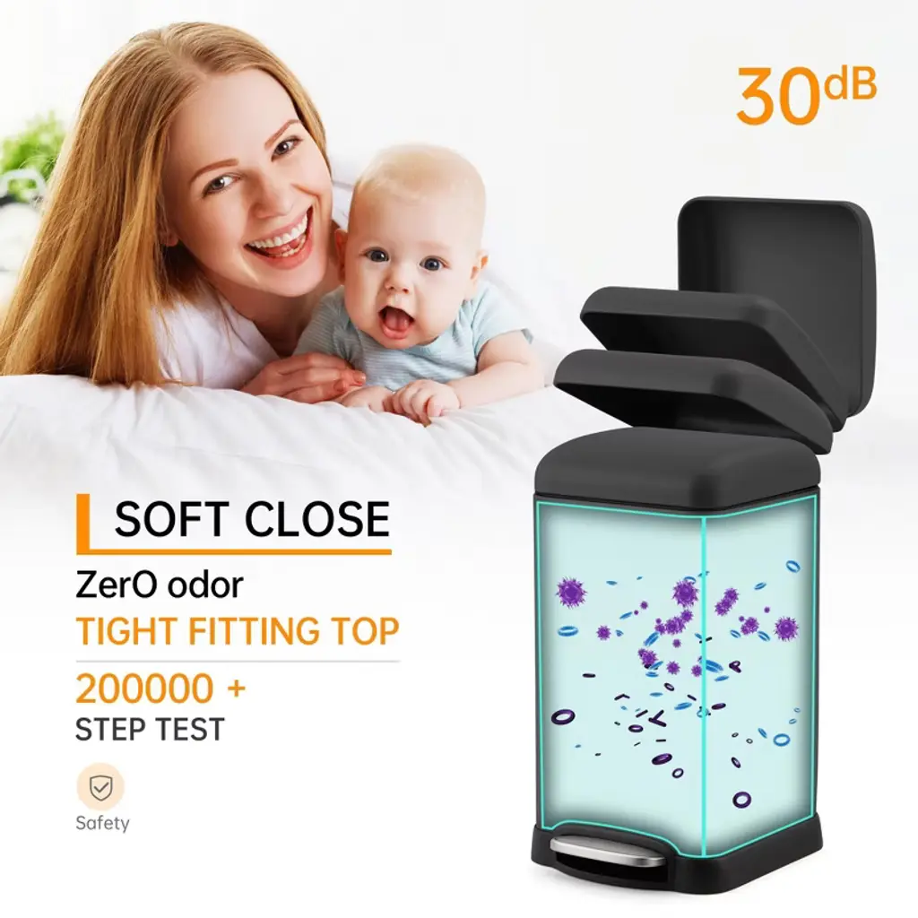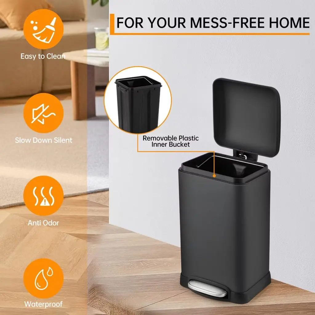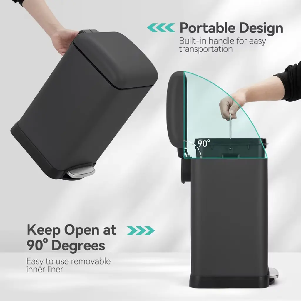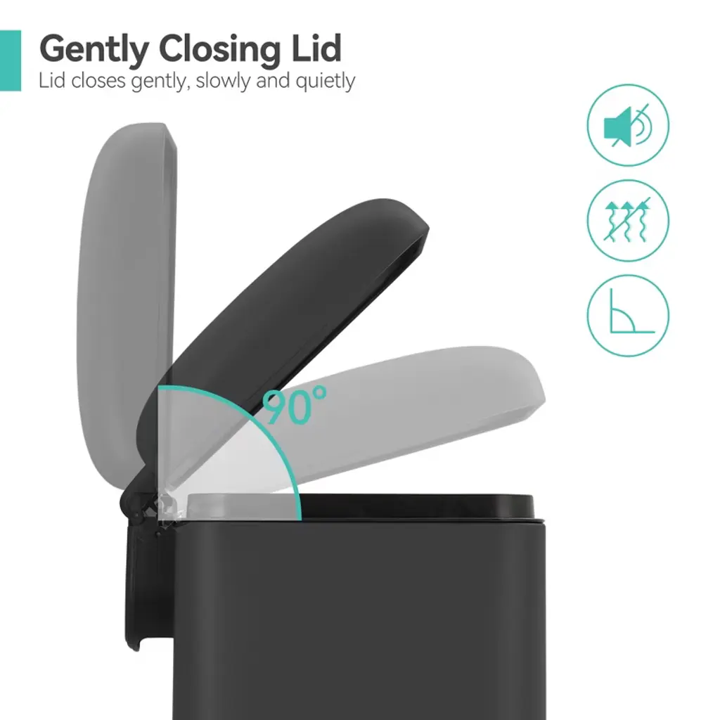 Trash Can With Lid, 3.2-gallon (12l) Step Trash Bin For Kitchen, Stainless Steel, Soft Close And Stays Open,inner Bucket,for Bedroom, Bathroom,black