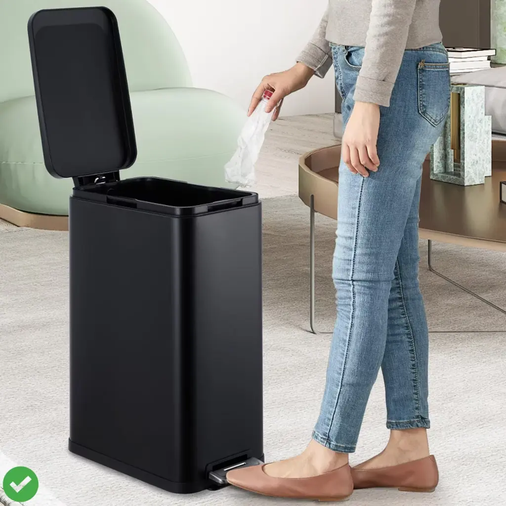 Stainless Steel Trash Can, M7 12L Capacity, 30x24x44cm, Durable Kitchen Bathroom Bin, Anti-Stain Hand Design Garbage Can, Black