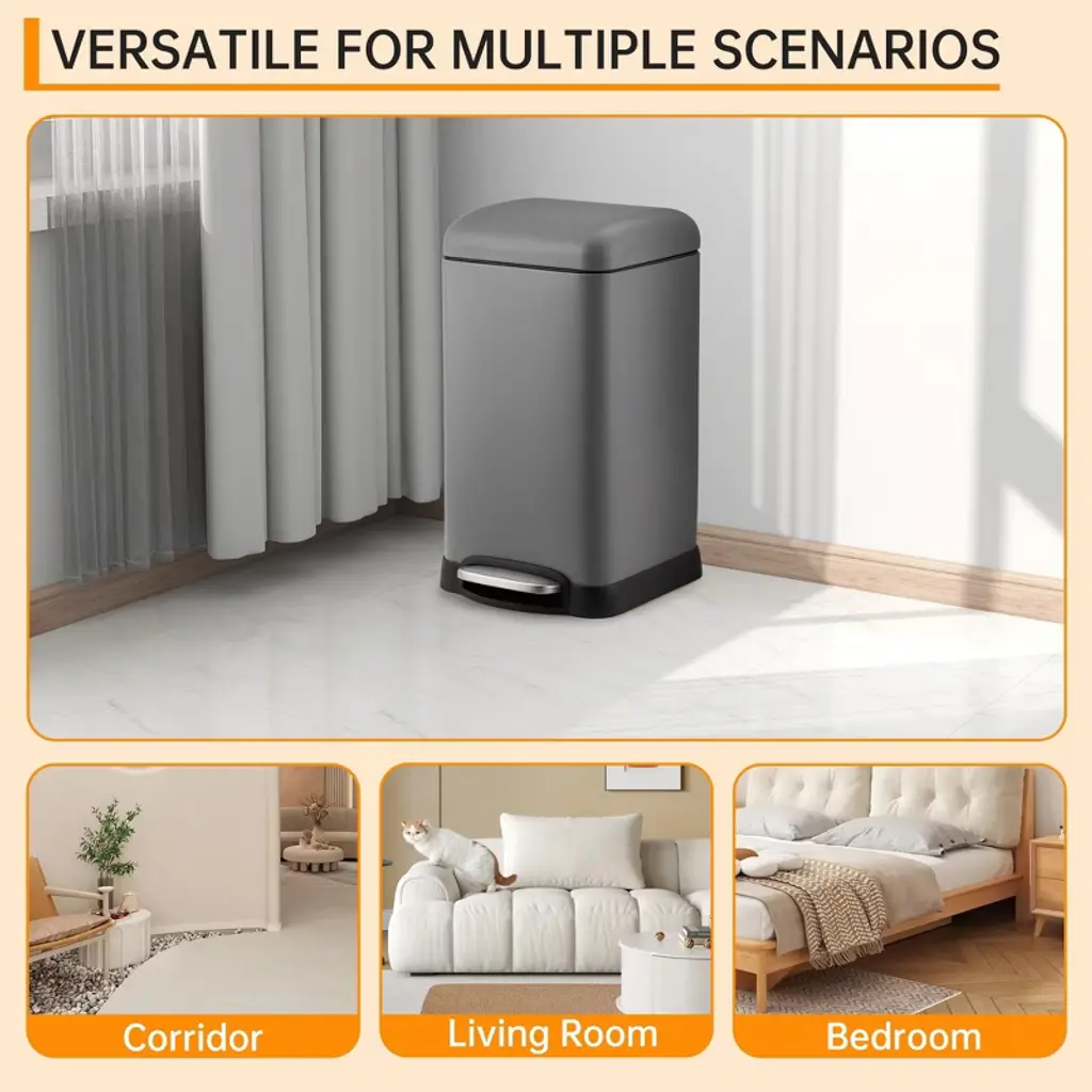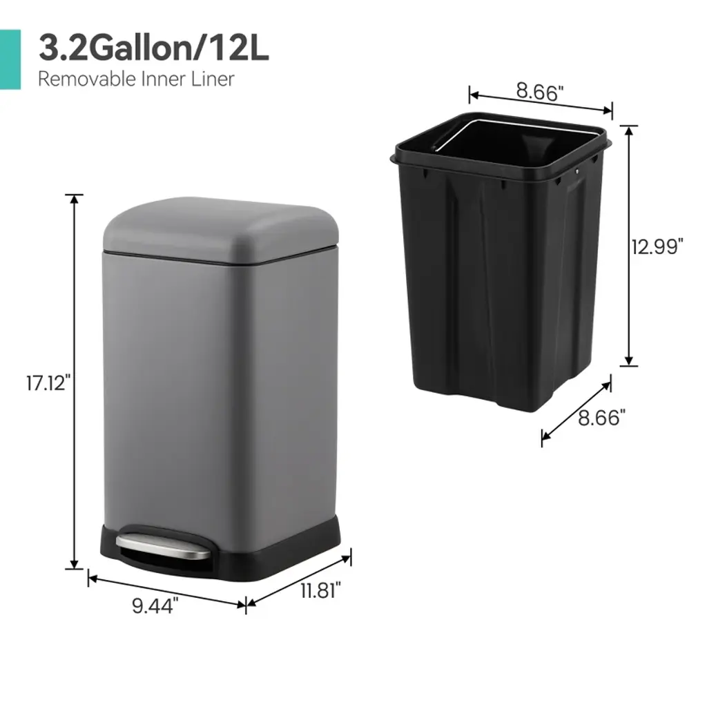 Trash Can With Lid, 3.2-gallon (12l) Step Trash Bin For Kitchen, Stainless Steel, Soft Close And Stays Open,inner Bucket,for Bedroom, Bathroom,white