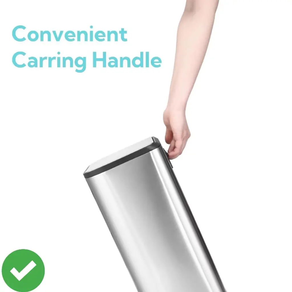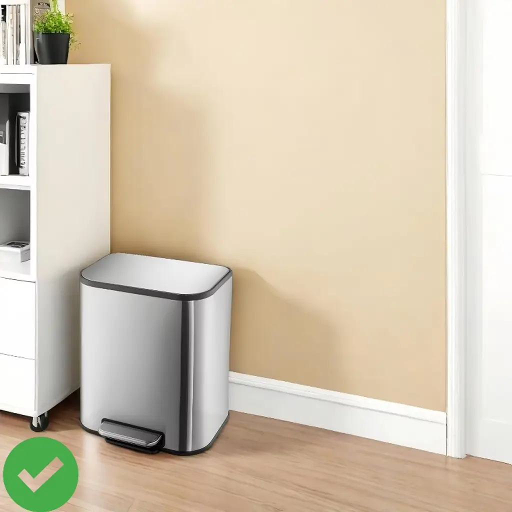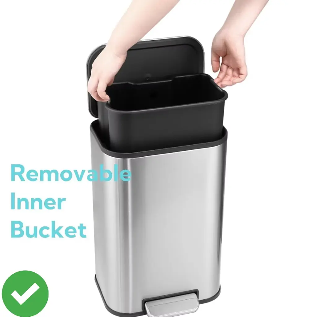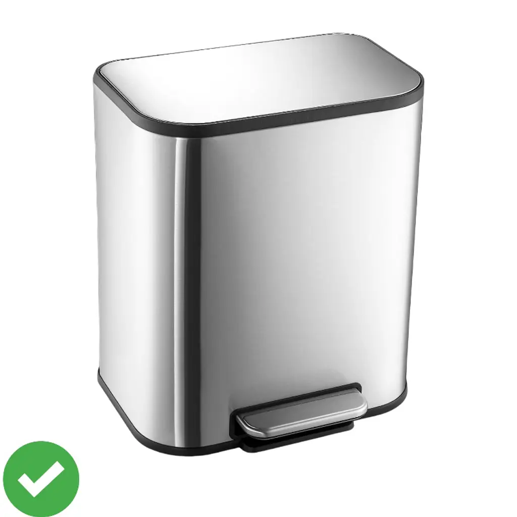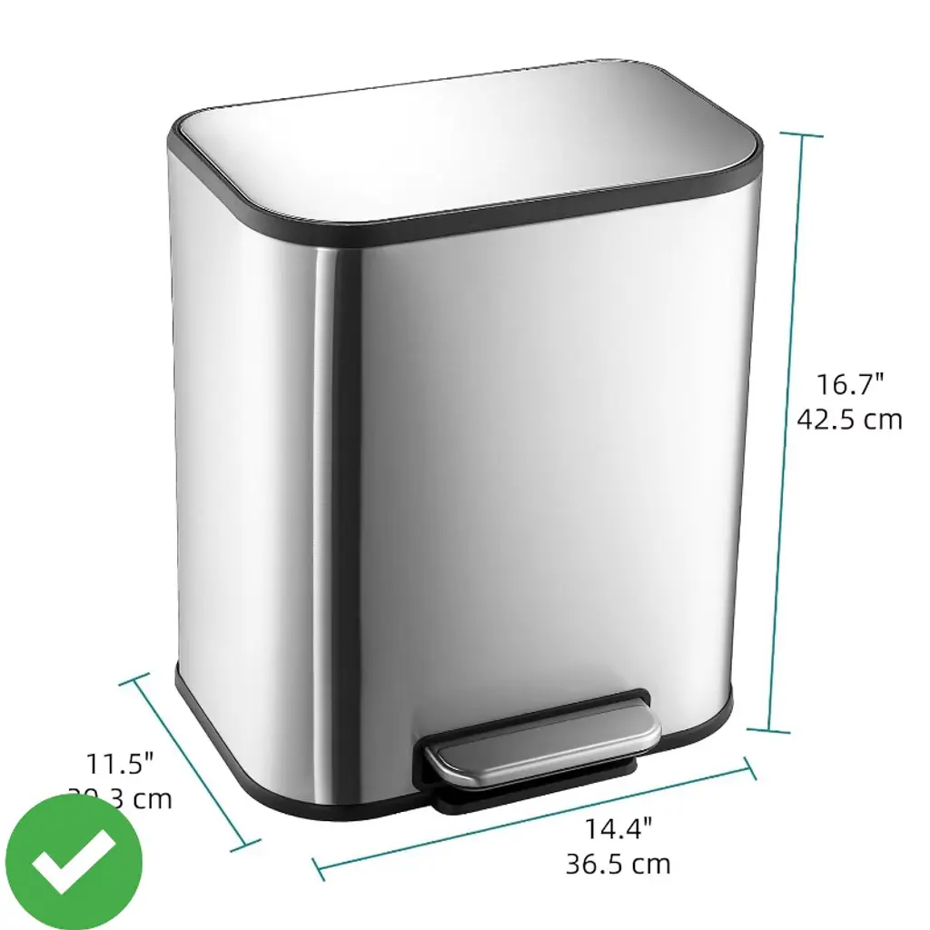 High-Quality Material: Crafted from robust stainless steel, this trash can comes with a stainless steel lid and foot pedal. The result is a fingerprint-resistant and scratch-proof exterior that not only looks sophisticated but is also incredibly easy to clean and maintain, ensuring long-lasting beauty and functionality.